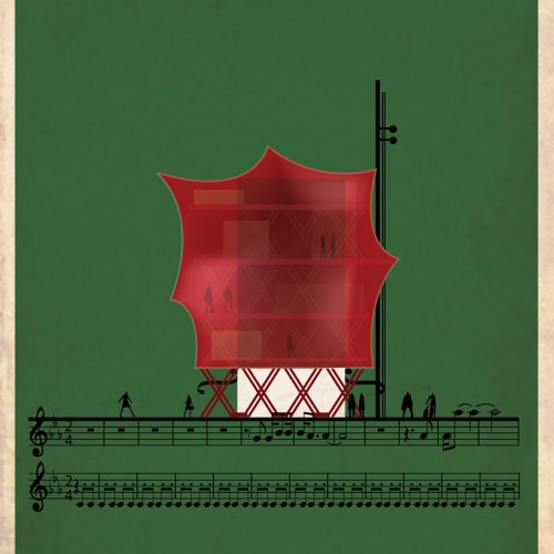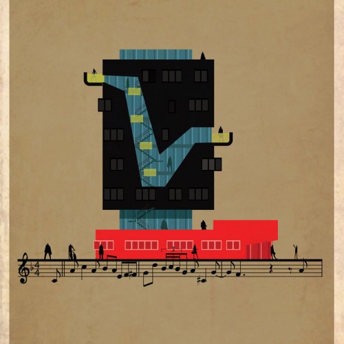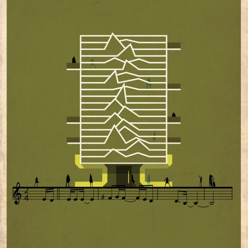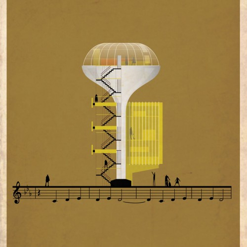 Federico Babina s’explique sur son projet : “Le parallèle entre l’architecture et la musique est divers et tout à fait extraordinaire. Il y a un ordre mathématique commun qui régit les formes et le rythme. L’idée était de raconter une histoire à partir de la bande son et d’imaginer les formes cachées derrière elle.”