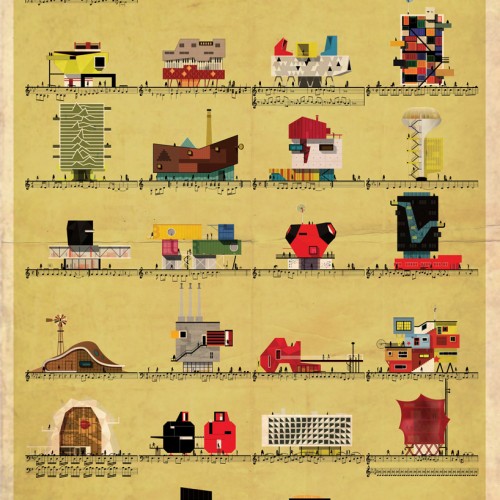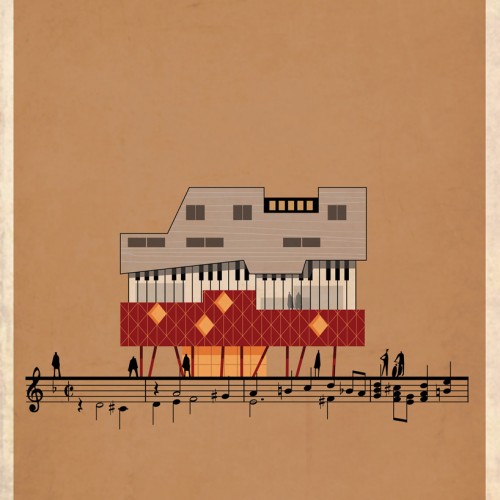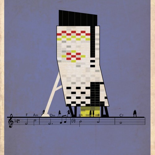 Lorsque des artistes ou des groupes ont tellement apporté à la musique qu’il serait normal de les considérer comme les architectes de leur genre musical. Que se soit le jazz avec Miles Davis ou Chet Baker, le rock avec Elvis ou Radiohead, le grunge avec Nirvana, la pop avec les Beatles ou Blur. Et l’architecte et illustrateur Federico Babina, habitué à mélanger ces deux arts, a la bonne idée d’associer musique et architecture dans sa nouvelle série graphique ARCHIMUSIC. 27 grands génies de la musique sont alors retranscrits en bâtiments architecturaux inspirés de leurs caractéristiques qui ont fait d’eux des icônes.