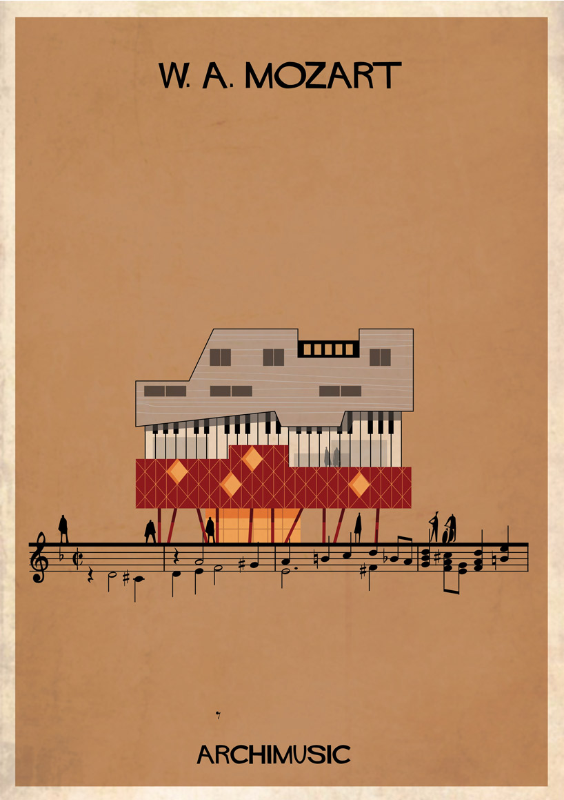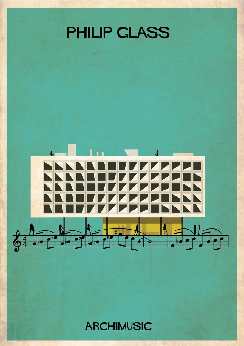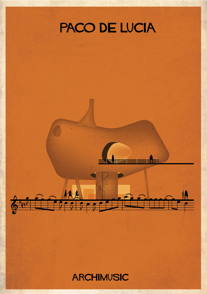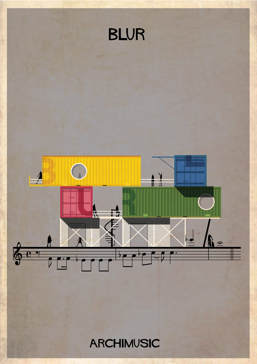 Lorsque des artistes ou des groupes ont tellement apporté à la musique qu’il serait normal de les considérer comme les architectes de leur genre musical. Que se soit le jazz avec Miles Davis ou Chet Baker, le rock avec Elvis ou Radiohead, le grunge avec Nirvana, la pop avec les Beatles ou Blur. Et l’architecte et illustrateur Federico Babina, habitué à mélanger ces deux arts, a la bonne idée d’associer musique et architecture dans sa nouvelle série graphique ARCHIMUSIC. 27 grands génies de la musique sont alors retranscrits en bâtiments architecturaux inspirés de leurs caractéristiques qui ont fait d’eux des icônes.