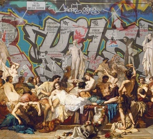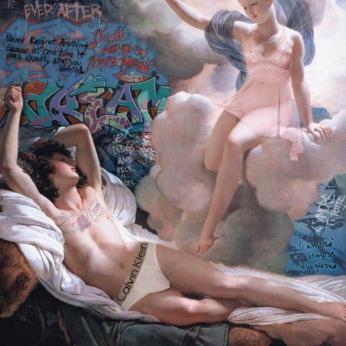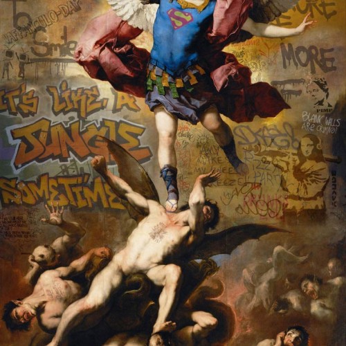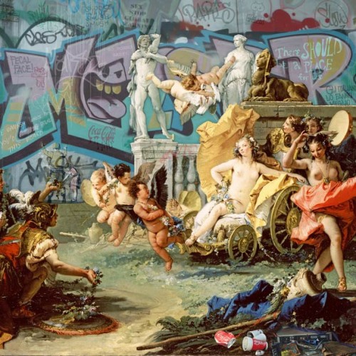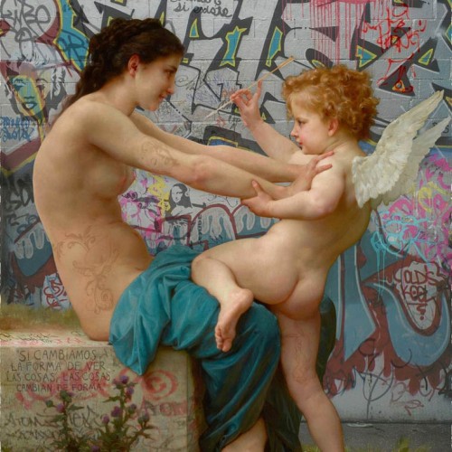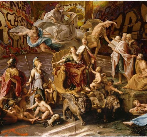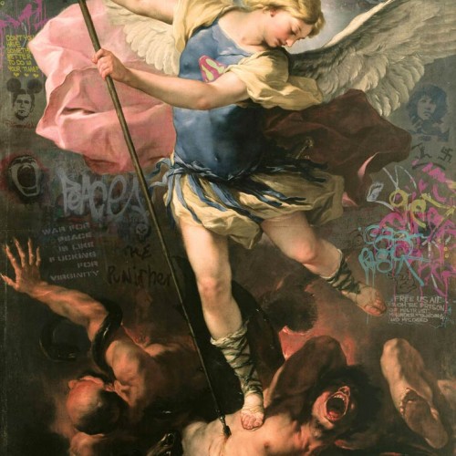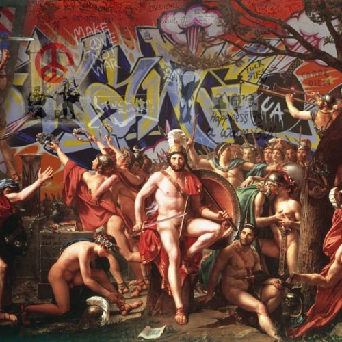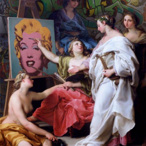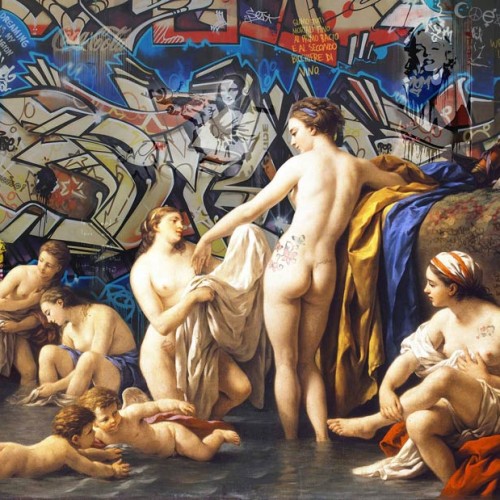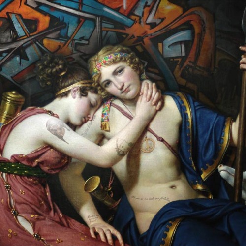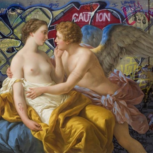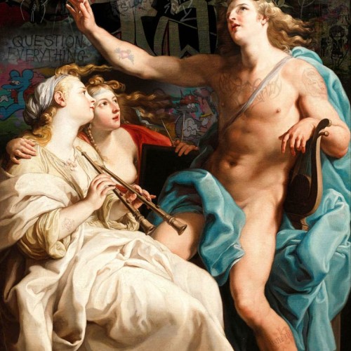 C’est un mélange des genres. L’artiste Marco Battaglini s’amuse à mélanger culture street art et pop art dans des tableaux de la Renaissance. La Grèce antique s’habille alors de couleur et de lettrage, pour effacer les barrières culturelles et temporelles. L’anachronisme est assez séduisant comme le montre ces quelques créations à la suite.