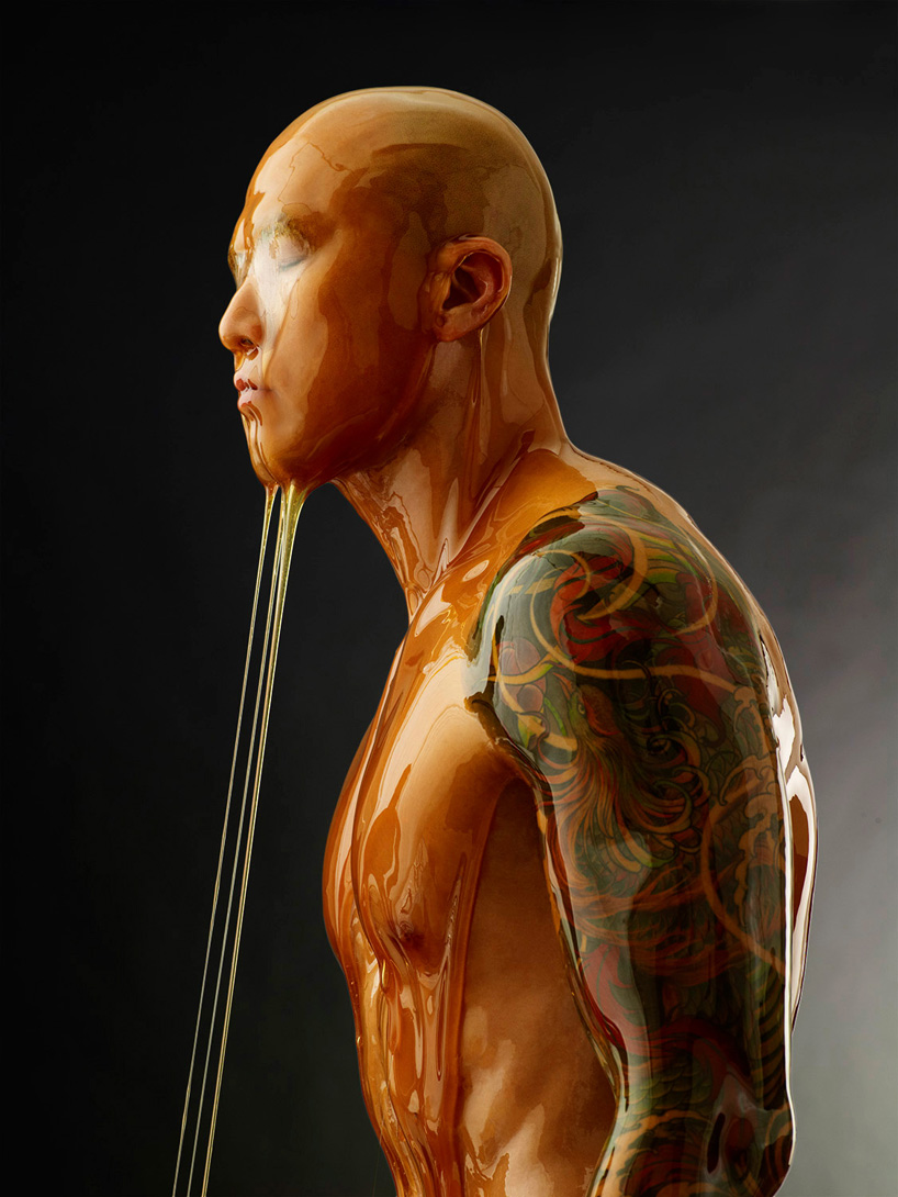 C’est dégoulinant. L’artiste américain Blake Little a une grande carrière de photographe, de portraitiste pour de nombreuses célébrités à travers le monde. Dernièrement, il a continué à expérimenter le corps humain et plus précisément comment le corps et la peau peut transmettre un message, une émotion. Son dernier projet Preservation présente des photos où les modèles sont recouverts entièrement de miel. Des photos étonnantes et dégoulinantes où le corps humain semble figé dans le temps. Une préservation où chaque corps s’exprime libéré de son modèle et sa personnalité. Chaque corps évoque une émotion à travers ce qu’il représente, sa position, sa sensualité. Etant figé dans le temps, impossible à se mouvoir, le corps de ses modèles s’exprime par lui-même. La question du corps et de comment celui-çi s’exprime est donc posée à travers ces photos. Cependant, ces photos posent aussi la question d’une énorme gaspillage de miel et du syndrome d’effondrement des colonies d’abeilles. Une deuxième question très délicate vue les circonstances climatiques actuelles.