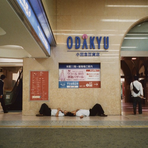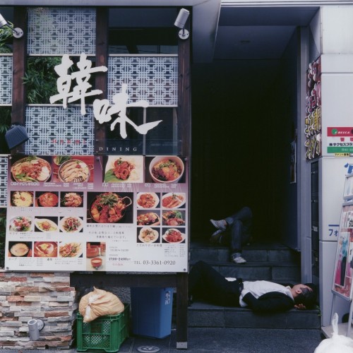 Pour ses photos, Kenji Kawamoto a parcouru les rues de Tokyo, aussi bien en début de soirée que tard le soir, à la recherche de buveurs ayant atteint leurs limites face à l’alcool. La volonté est de rendre hommage à ces citoyens au bout de leur vie qui souhaitent simplement échapper le temps de quelques verre à leur société. Le Japon est connu pour ces difficultés de vie professionnel, certains boivent entre amis pour s’amuser, d’autres en ont réellement besoin pour s’épanouir et de nombreux japonais en ont peut-être besoin pour oublier leur Enfer quotidien. La question n’est pas de savoir pourquoi ils ont bu, mais comment ils en souffrent à la fin. Les voilà allongés au sol, au bout de leur humanité dans leur propre paradis alcoolisé. Une belle référence au film du même nom de Minoru Shibuya sorti en 1961, comme l’explique Kenji Kawamoto. Un film qui parle avec humour de la tolérance à l’alcoolisme dans cette société japonaise. Comme quoi, le temps passe mais la vie reste.