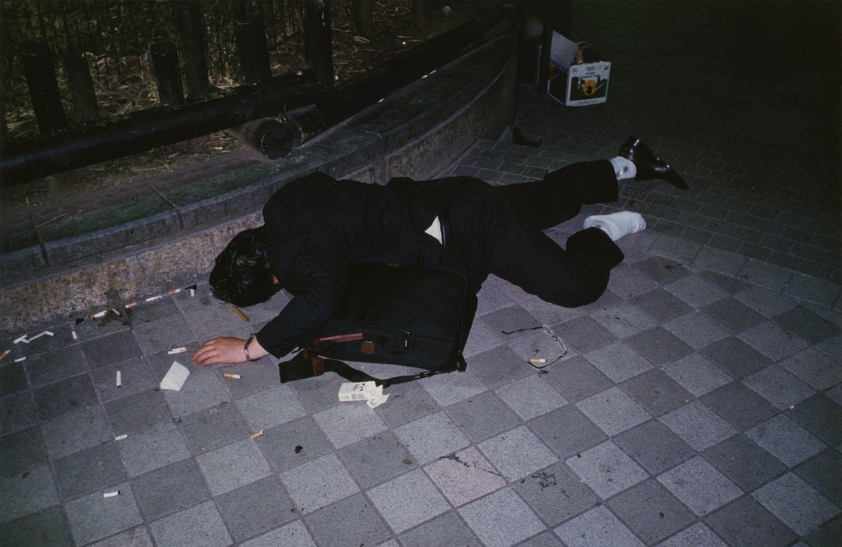 Pour ses photos, Kenji Kawamoto a parcouru les rues de Tokyo, aussi bien en début de soirée que tard le soir, à la recherche de buveurs ayant atteint leurs limites face à l’alcool. La volonté est de rendre hommage à ces citoyens au bout de leur vie qui souhaitent simplement échapper le temps de quelques verre à leur société. Le Japon est connu pour ces difficultés de vie professionnel, certains boivent entre amis pour s’amuser, d’autres en ont réellement besoin pour s’épanouir et de nombreux japonais en ont peut-être besoin pour oublier leur Enfer quotidien. La question n’est pas de savoir pourquoi ils ont bu, mais comment ils en souffrent à la fin. Les voilà allongés au sol, au bout de leur humanité dans leur propre paradis alcoolisé. Une belle référence au film du même nom de Minoru Shibuya sorti en 1961, comme l’explique Kenji Kawamoto. Un film qui parle avec humour de la tolérance à l’alcoolisme dans cette société japonaise. Comme quoi, le temps passe mais la vie reste.