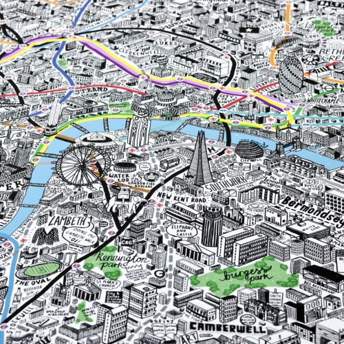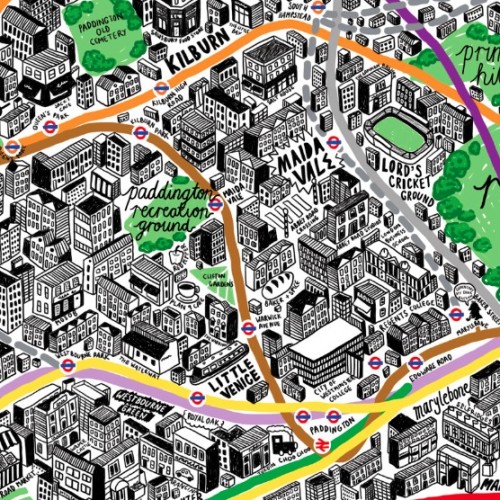 C’est un travail de fourmi. Après des mois de recherche et de travail, l’illustratrice Jenni Sparks a dessiné des cartes de Paris, Londres, New-York, San Francisco et Berlin entièrement à la main. Des cartes commandées par Evermade.com qui montrent rues, transports et monuments principaux mais aussi cafés, restaurants, boutiques, lieux de vie célèbres de ces villes. Des cartes impressionnantes pour leur précision et géniales pour leur style.