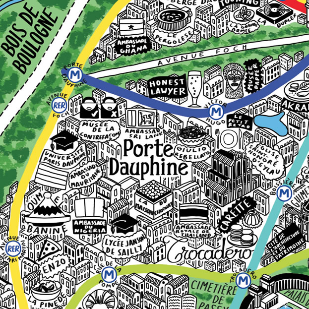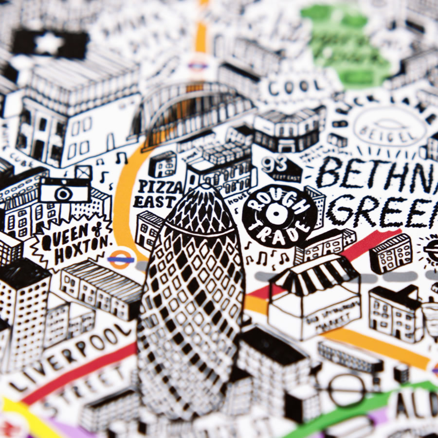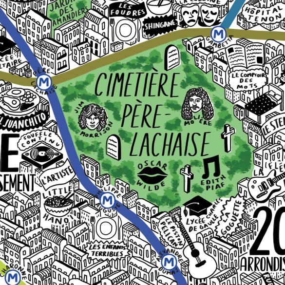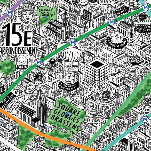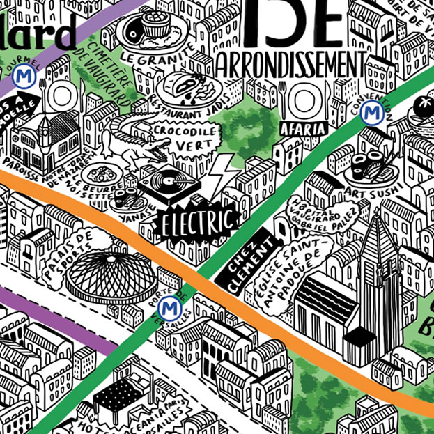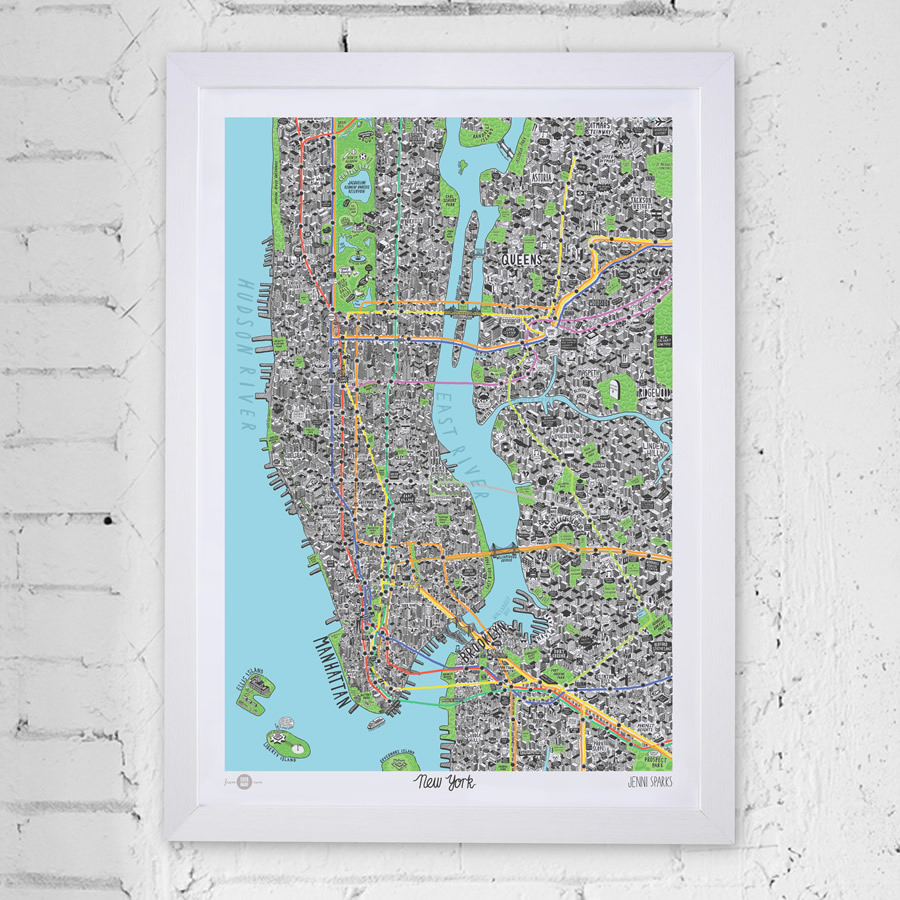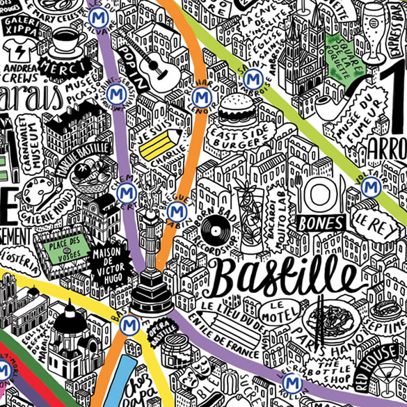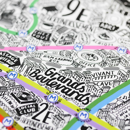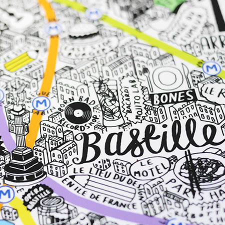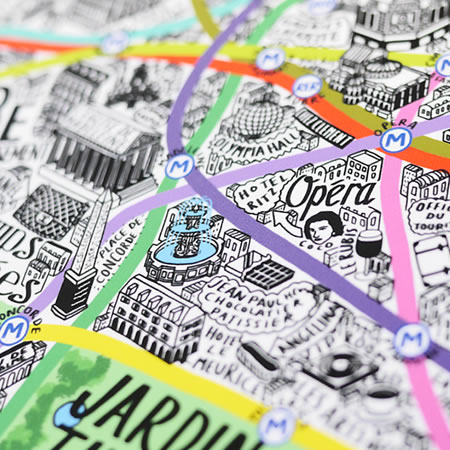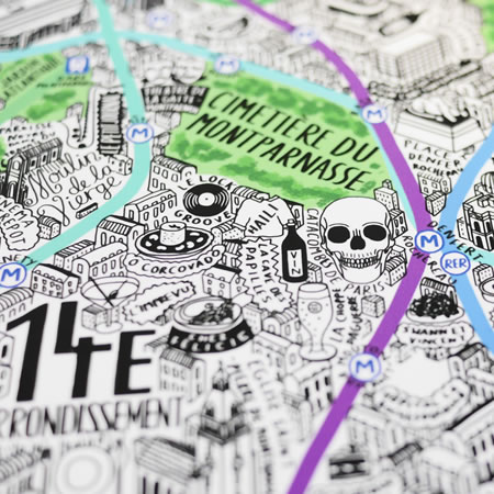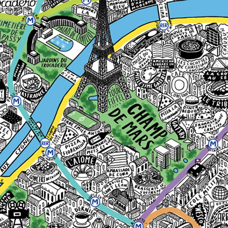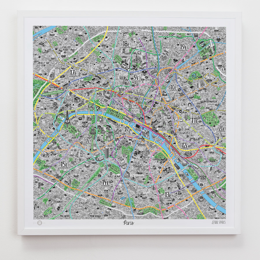 C’est un travail de fourmi. Après des mois de recherche et de travail, l’illustratrice Jenni Sparks a dessiné des cartes de Paris, Londres, New-York, San Francisco et Berlin entièrement à la main. Des cartes commandées par Evermade.com qui montrent rues, transports et monuments principaux mais aussi cafés, restaurants, boutiques, lieux de vie célèbres de ces villes. Des cartes impressionnantes pour leur précision et géniales pour leur style.