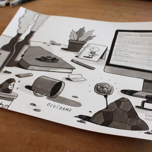 C’est un mec sympa. Raúl Pardo, je l’ai rencontré au comptoir d’un bar au Mexique, et ce soir là, il a sauvé ma soirée grâce à sa bonne humeur. On a parlé illustrations, il m’a montré ce qu’il faisait et ça m’a tout de suite plu. Il y a de la poésie dans ses dessins. Raúl Pardo sourit tout le temps, dessine depuis qu’il est petit, expose, fait partie de plusieurs collectifs et a la chance de gagner sa vie avec cette passion. Je fais donc honneur au comptoir du Torréfacteur avec cette brève et vous laisse découvrir Raúl au fil de quelques questions.