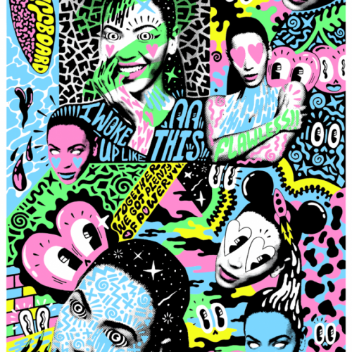 Hattie Stewart s’est autoproclamée Gribouilleuse Professionnelle. Son concept c’est de gribouiller, avec des Posca, sur les couv’ de magazines et d’un peu tout ce qui traverse son chemin. Ce qu’Hattie Stewart préfère c’est s’attaquer sans pitié aux plus influents. Vogue et Playboy y ont eu droit. On remplace les tétons par des gros cœurs, des yeux par des éclairs, on y ajoute tout plein de personnages, des étoiles, des pois, des lignes et le tout dans un style cartoonesque aux couleurs fluos et HOP! le tour est joué et ça fait BIM, PSCHIT, BANG dans les yeux.
