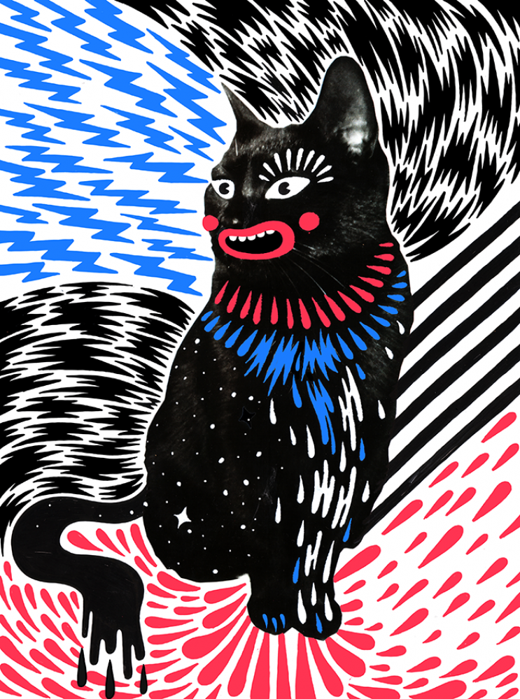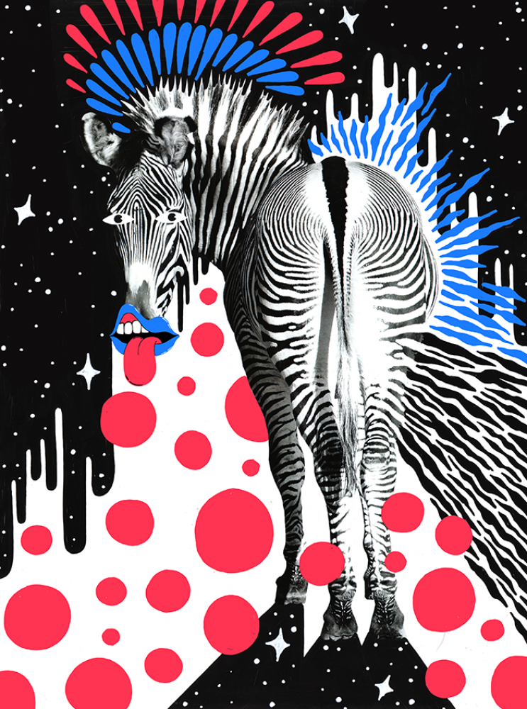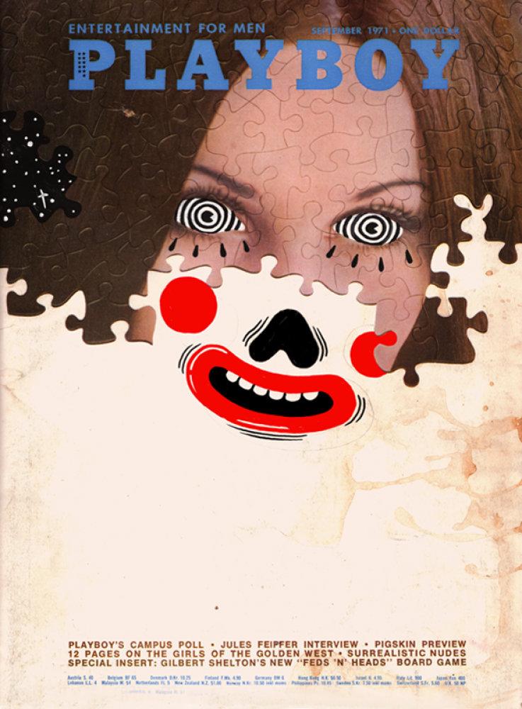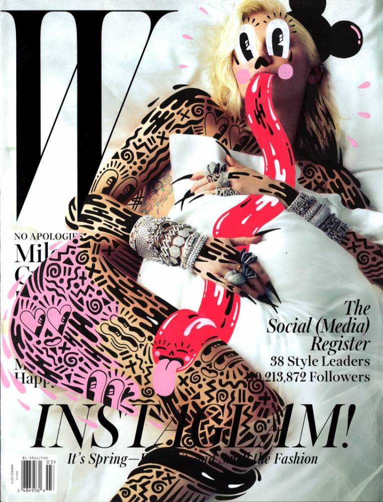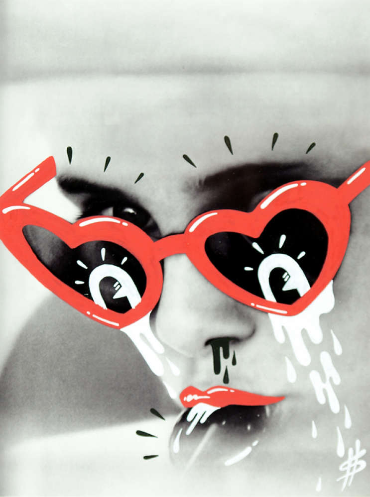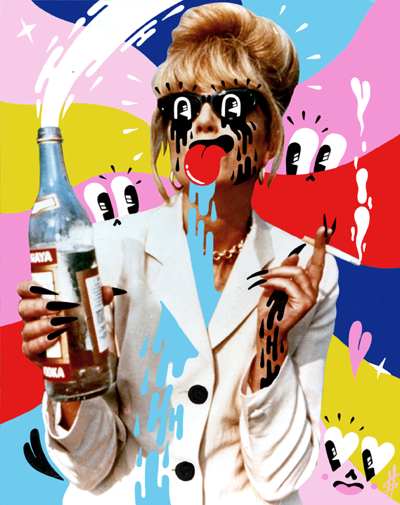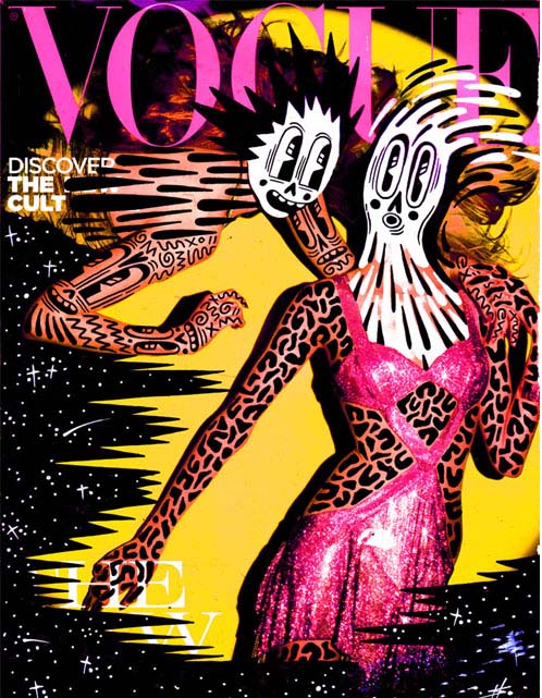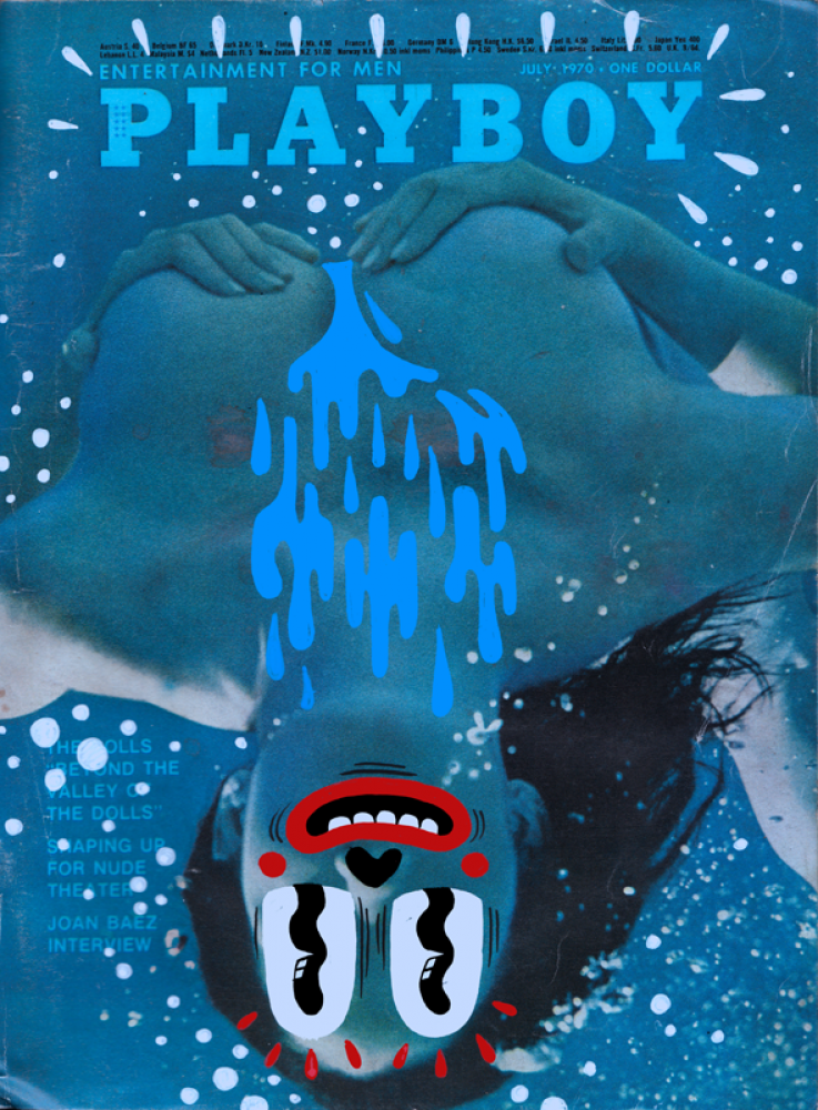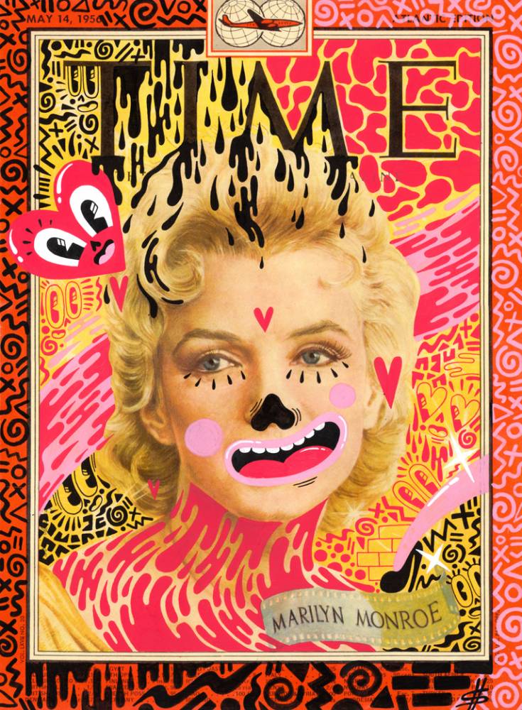 Hattie Stewart s’est autoproclamée Gribouilleuse Professionnelle. Son concept c’est de gribouiller, avec des Posca, sur les couv’ de magazines et d’un peu tout ce qui traverse son chemin. Ce qu’Hattie Stewart préfère c’est s’attaquer sans pitié aux plus influents. Vogue et Playboy y ont eu droit. On remplace les tétons par des gros cœurs, des yeux par des éclairs, on y ajoute tout plein de personnages, des étoiles, des pois, des lignes et le tout dans un style cartoonesque aux couleurs fluos et HOP! le tour est joué et ça fait BIM, PSCHIT, BANG dans les yeux.