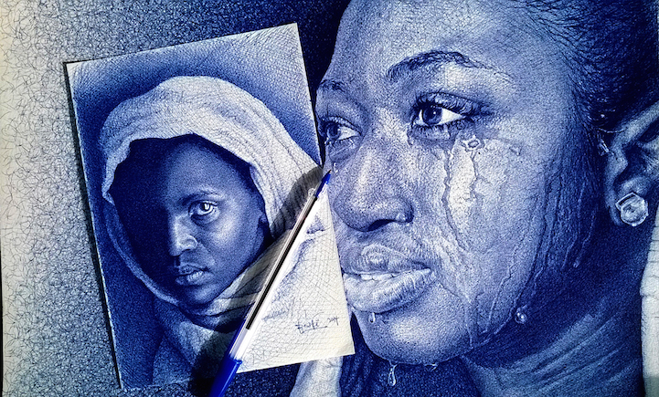 C’est tout au stylo BIC. Enam Bosokah est une artiste ghanéen qui réalise des portraits ultra-réalistes et incroyables uniquement avec un simple stylo. On est très loin de nos “oeuvres” gribouillées sur le coin de la table de colle.
