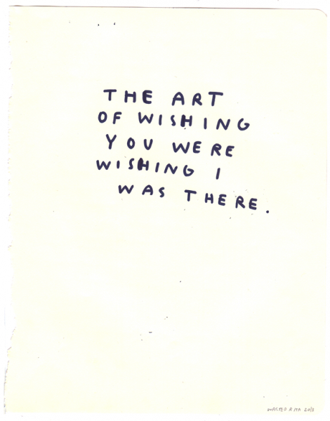 D’humeur punk et spontanée elle bouscule les codes et joue avec le sarcasme. Loin d’affectionner la perfection Wasted Rita dessine grossièrement, gribouille et rature. Le résultat est juste GE-NIAL! A chaque nouveau dessin on sourit, on sautille, on partage avec ses amis, ses ennemis, son amoureux, son ex… on évitera quand même de le partager avec sa mère.