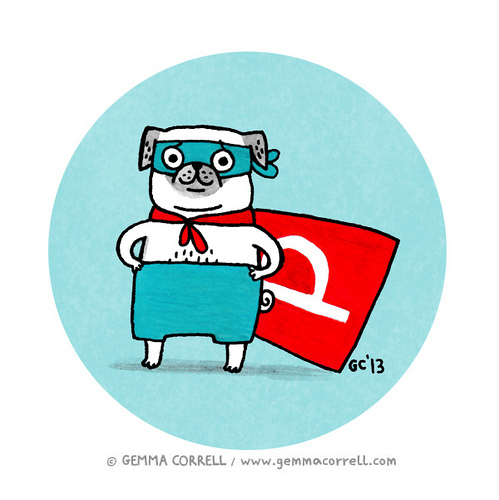 C’est la reine des Pugs. Gemma Correll est une illustratrice anglaise qui fait des dessins tous mimis. Elle a un style enfantin, une passion pour les animaux (les Pugs surtout, mais aussi les Chats, les Dinosaures et parfois les Humains).