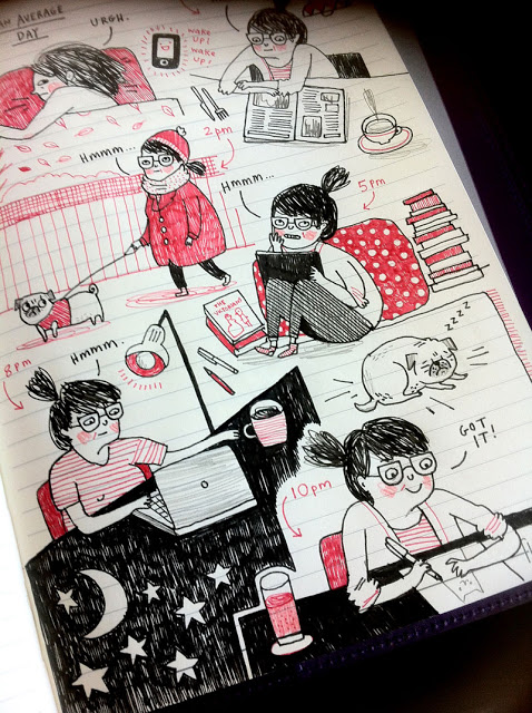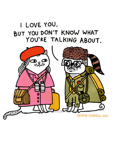 Le secret du succès de Gemma Correll est de travailler dur, de persévérer et de carburer au café. Gemma Correll est hypra-productive (et hyper-caféinée). Vous lui donnez un crayon avec une feuille blanche et, deux minutes plus tard, elle sera remplie de personnages sympathiques, Pugs et Chats principalement, et peut être vous-même, surtout si vous avez une drôle de coupe de cheveux, que vous êtes accompagné d’un animal improbable ou avez un accent prononcé.