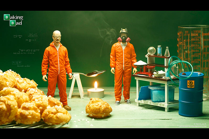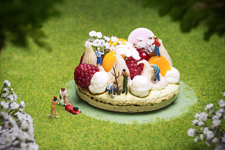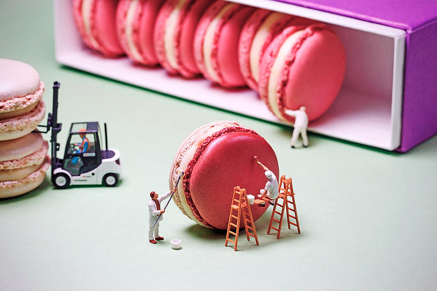 C’est le déclic et à partir de ce moment, créativité, précision et second degré vont s’imbriquer afin de raconter des histoires toujours amusantes autour de desserts et de pâtisseries en jouant avec les couleurs, les textures ainsi qu’en créant des illusions d’échelle à l’aide de figurines. Les mises en scène sont bien « réelles », aucun photos-montages numériques.