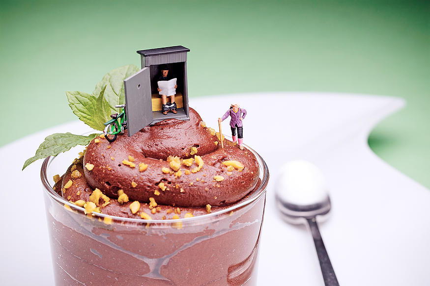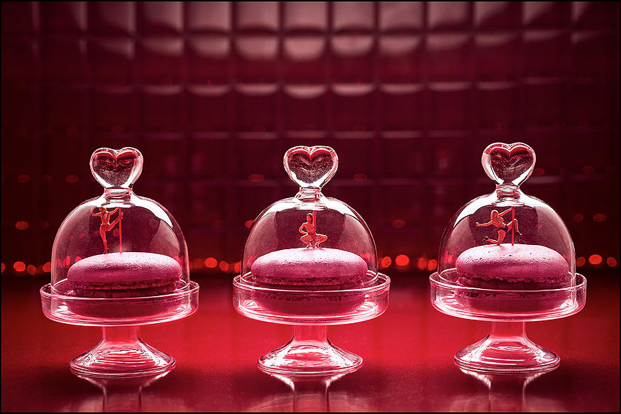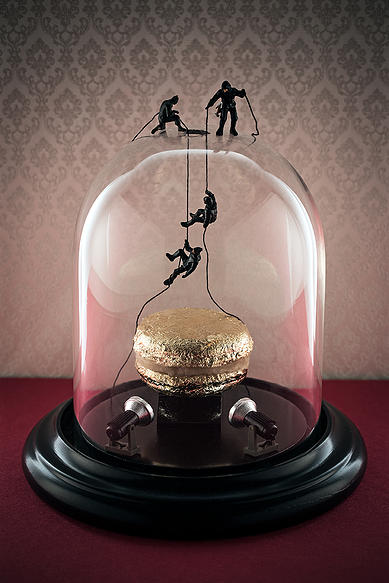“Dans cette série, je joue sur la gourmandise et le plaisir. La pâtisserie est encore largement associée à un univers parfait et coloré où tout est douceur et raffinement. J’ai voulu y apposer des scènes un brin décalées et détourner le sens de l’expression « se faire un petit plaisir » souvent associée à la pâtisserie.” Nicolas Kneeper à propos de Little Pleasure.