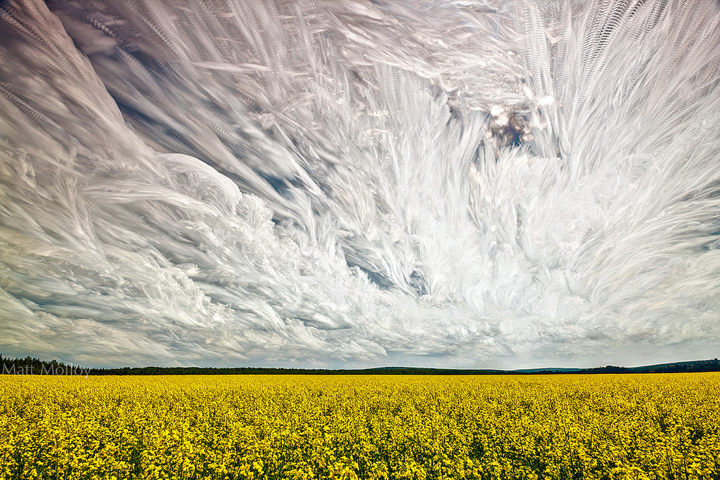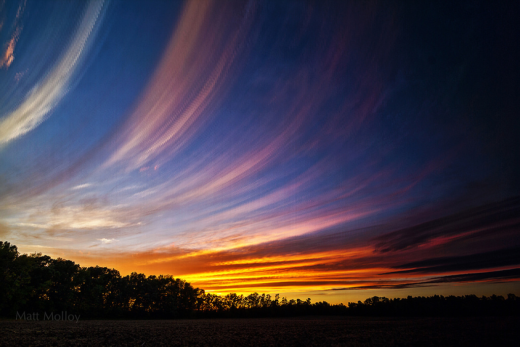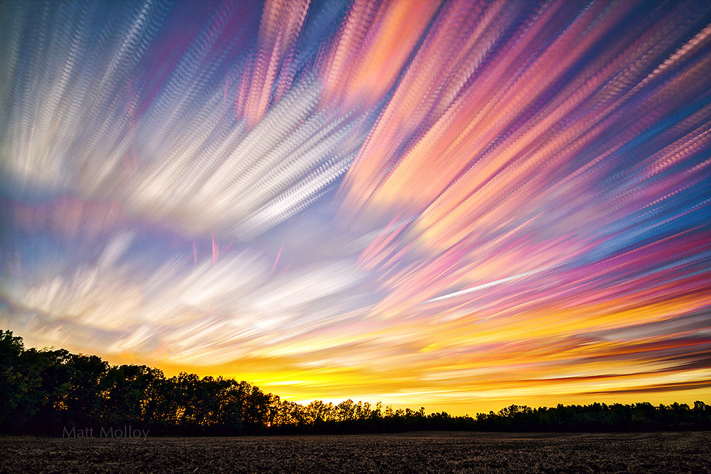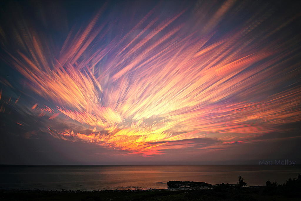 Matt Molloy est un photographe canadien, habitué à s’émerveiller du ciel sauvage de son pays. A force de le photographier sous toutes les coutures, de tous les angles et d’en faire de magnifique timelapse pour ne rien rater du moment, il eu l’idée de compiler tout ça sur une seule et même photo. Le résultat est tout simplement magnifique. Des #skyporn en veux-tu, en voilà, à rendre jaloux le plus connecté des impressionniste. Des ciels peints à la spatule ou en point grâce à une technique numérique que Matt Molloy appelle “timestack”. Ne loupez pas sa vidéo tutorial plus bas et quelques unes de ses photos à la suite.