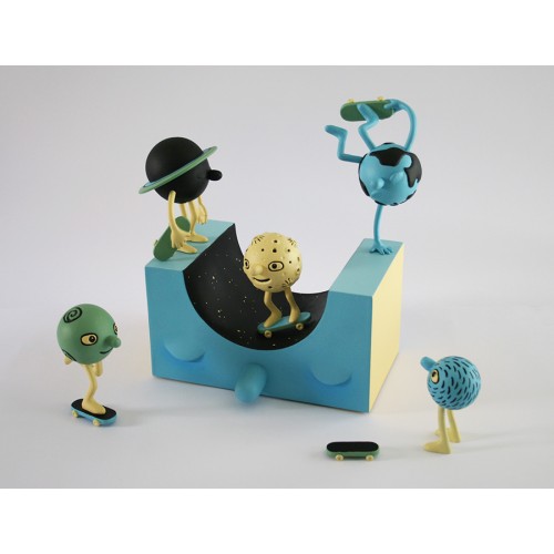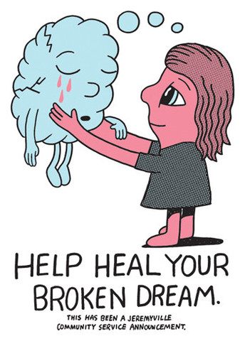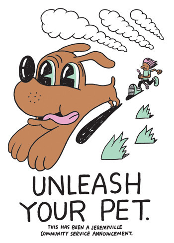 Je ne sais plus trop où j’ai découvert Jeremyville mais je sais qu’à chaque fois qu’un de ses personnage croise mon chemin, j’ai un coup de cœur et une envie irrésistible de tout acheter : objets, jouets, livres, autocollants, T-shirts, planches de skateboard, chaussures de sport, (et j’en passe). Les personnages de Jeremyville issus de sa culture pop, de son flow ensoleillé et de la spontanéité de son trait font l’effet d’une bombe sur moi. Je me sens positivée et motivée. Merci Jeremyville.
