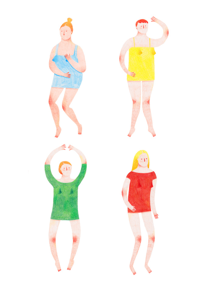 Eleonora Arosio dessine au crayon et au pastel, laisse des textures apparentes qui rythment ses dessins aux couleurs douces et aux sujets fins : des femmes parfois nues, en mouvement, la mer, des objets.