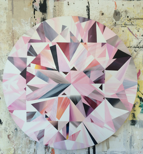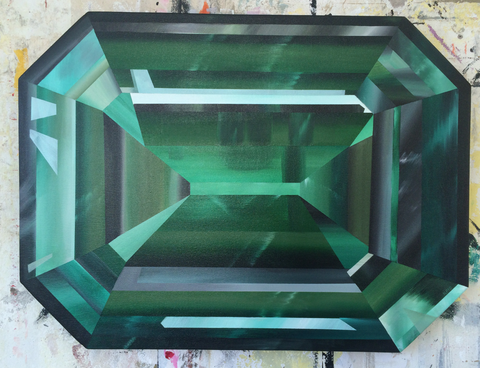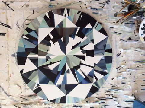 Loin du bling-bling, le travail de Kurt vise à représenter la fascination pour les objets liés au désir. Kurt Pio utilise des formats non conventionnels comme pour se donner plus de liberté. Là, il utilise d’énormes canevas taillés sur mesure, à la forme des pierres précieuses.