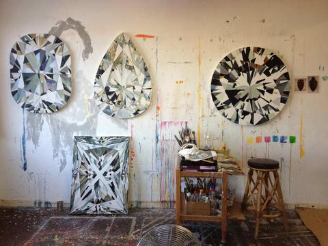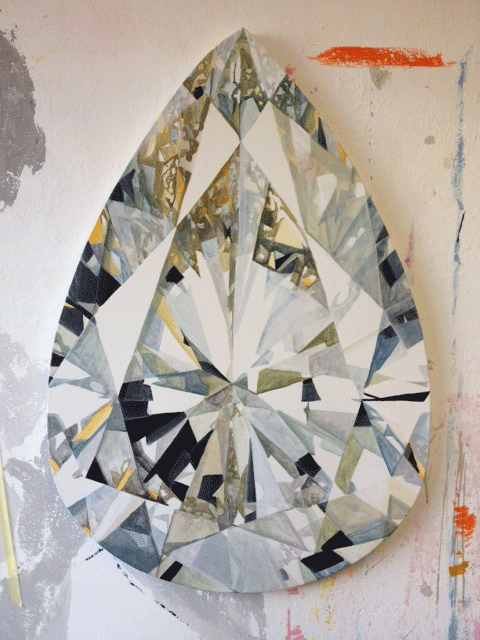 Kurt Pio est un artiste sensible d’Afrique du Sud qui pratique la gravure, la peinture et la sculpture. Aujourd’hui j’ai envie de parler de lui pour sa série qui nous fait briller les yeux à base de diamants de de pières précieuses – mais j’aurai pu choisir sa série de lunes – tout ce qu’il fait est élégant. On en redemande.