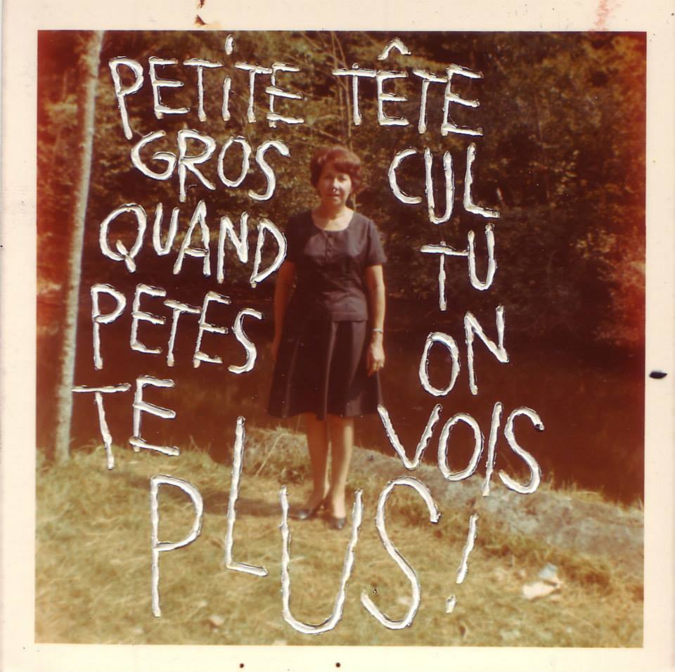C’est là qu’opère le génie d’LL Cool Jo. En gravant sur les photos des phrases spontanées et crues en lettres capitales, on découvre des messages drôles, souvent méchants. Évidement il faut une bonne dose de second degré pour apprécier. Moi j’adore !