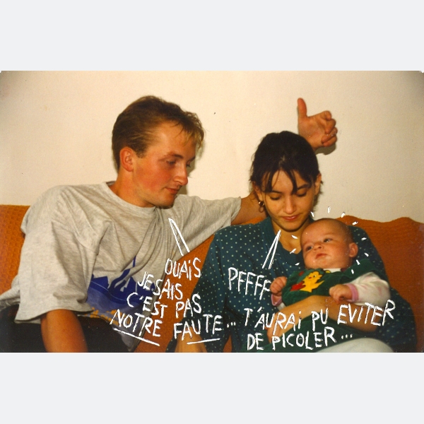 C’est un artiste au style punk doté d’une bonne dose d’imagination. Avec son projet Hot Club Violence, LL Cool Jo fait revivre de vieilles photos de famille qu’il agrémente de phrases pyrogravées sortant tout droit de la pensée de ces gens photographiés. La famille en prend pour son grade. Ça grince un peu.