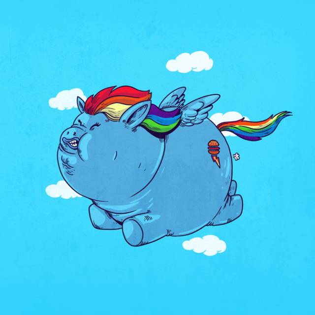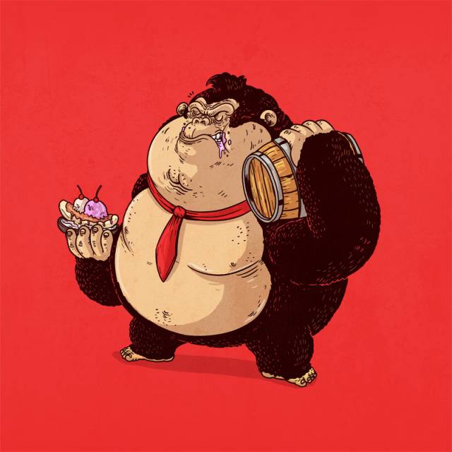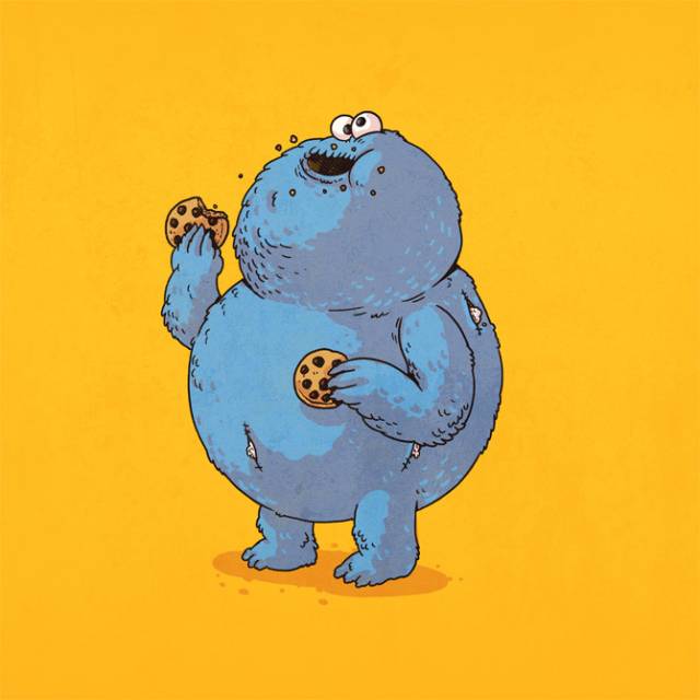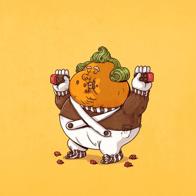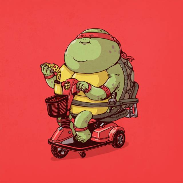A travers cette série Alex Solis s’est rendu compte qu’il n’y avait pas que les Tortues Ninja qui aient un problème de boulimie : Sonic se gave de pièces, Mario dévore les champignons magiques, banche neige a englouti des tonnes de pommes. Il revisite chaque personnage en glouton, et ça doit bien faire rire sa fille et moi, par la même occasion.
