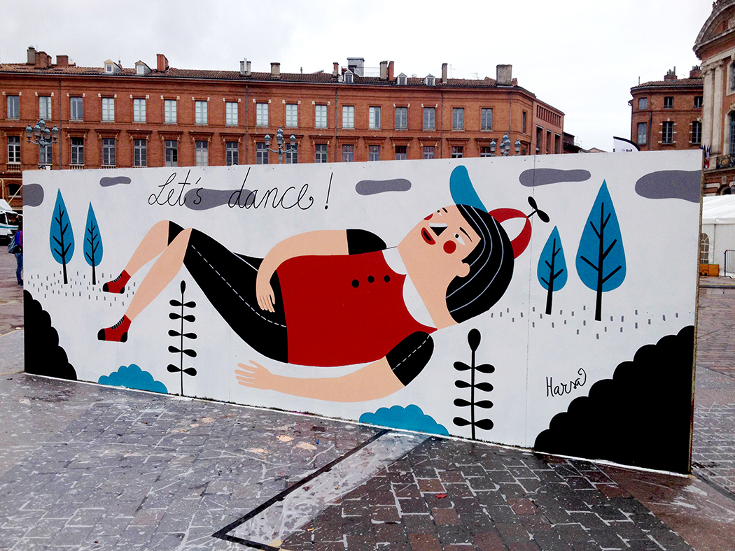 Et voilà, Harsa crée ses personnages expressifs et heureux qui gravitent dans un monde onirique pastel et pop à la fois. Harsa a ce pouvoir de faire parler les gens, les murs ou les journaux.