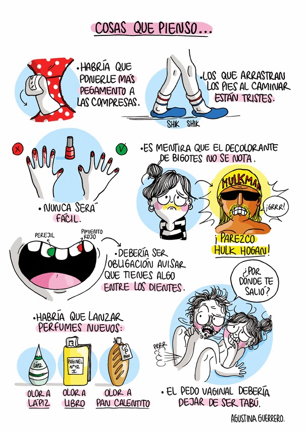 Agustina ne ment pas, elle exagère beaucoup, elle prend ces petits traits de caractères de la vie quotidienne et les grossit pour qu’on en rie. Son blog a été traduit en BD (Diario de una Volátil) puis en français sous le nom du journal d’une emmerdeuse. Vous n’avez donc aucune excuse pour ne pas y jeter un œil.