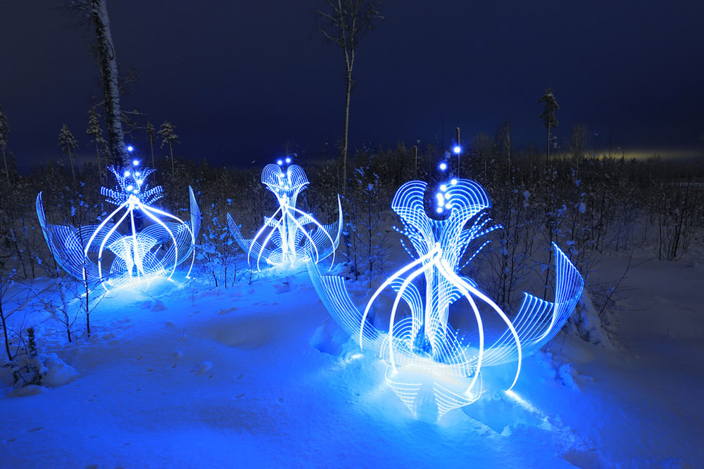 De l’obscurité, l’artiste finlandais fait naître Hannu Huhtamo un nouveau monde lumineux et merveilleux grâce au light painting 🌈