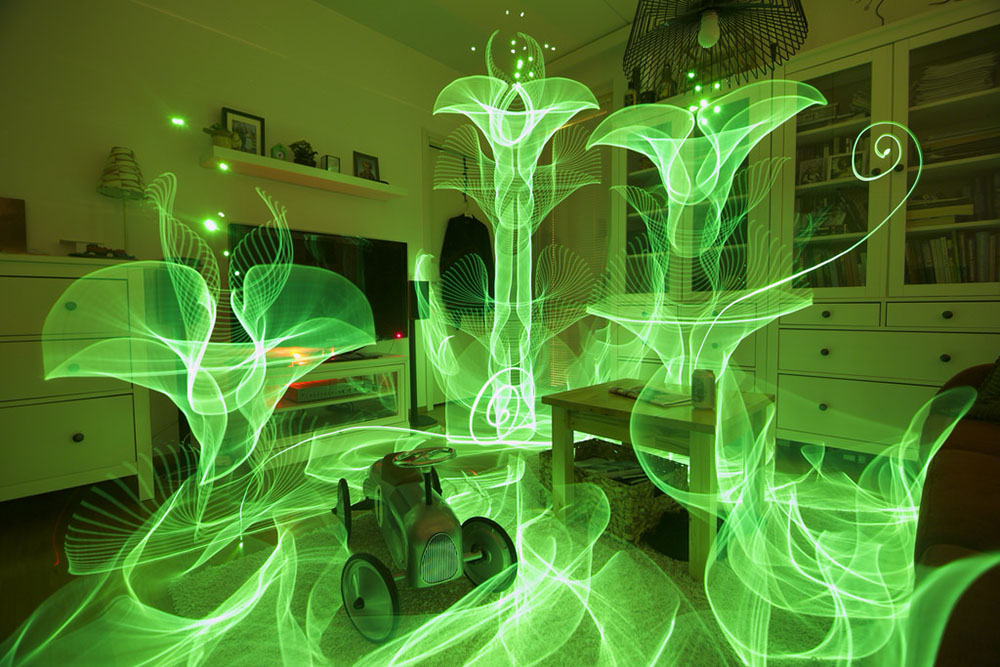 Hannu Huhtamo est un artiste finlandais qui utilise une multitude d’outil pour créer ses oeuvres lumineuses. Comme il peut l’expliquer, Hannu Huhtamo utilise l’obscurité comme toile et la lumière comme pinceau. Des lumières en tout genre et de toutes couleurs qui lui permettent de créer ses formes et ses fleurs qu’on dirait venir tout droit d’un film de science-fiction. Dans l’obscurité, il peint avec la lumière entre ses mains. Toutes les photos que vous pourrez voir à la suite n’ont pas été retouchées sur Photoshop.