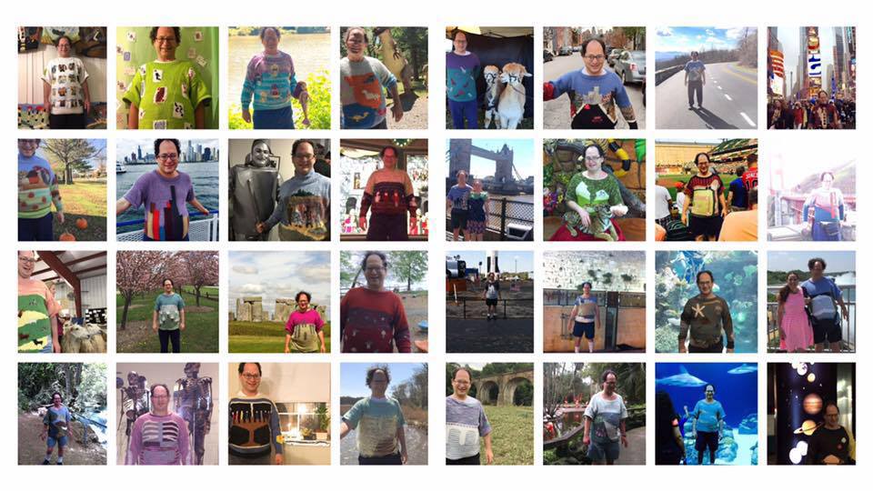 Quand on tombe sur Sam Barsky, on serait tenté de l’inviter à dîner un mercredi soir et de le présenter à quelques amis. Un dîner entre bons copains et à la découverte des passions qui sortent de l’ordinaire. Celle de Sam Barsky est certainement celle la plus extraordinaire du moment. Découvert sur Imgur il y a deux jour, il ne cesse d’être viralisé un peu partout sur Internet depuis. Parce que Sam Barsky a cette passion que personne d’autre à penser collectionner avant lui. Comme il l’explique sur son profil Facebook : “I am an artist who specializes in knitting sweaters with pictures of places around the world”