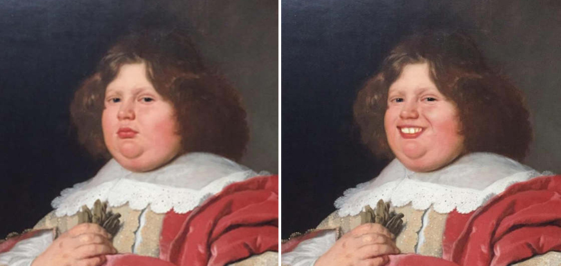 Aux Pays-Bas, Olly Gibbs est un designer qui s’amuse à faire sourire les œuvres d’art en utilisant l’application smartphone FaceApp.