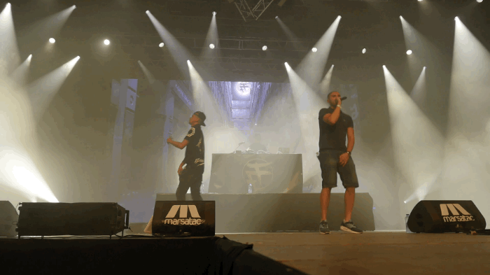 Cela faisait plusieurs années déjà que Dro cherchait à les revoir sur la scène de Marsatac. Comme il a pu me le confier lors de notre discussion de comptoir. Et cette année fut la bonne. La Fonky Family, dissous depuis dix ans, s’est reformé le temps d’un concert pour Marsatac. Et tout Marseille semblait ne pas vouloir rater l’évènement. “On ne va pas vous décevoir”, ont-ils lancé dans une salle pleine à craquer.Alerte rouge sur le Parc Chanot. Pendant bien une heure trente, les Bad Boys de Marseille (titre de leur collaboration avec Akhenaton qui les a révélés en 1995) ont ainsi tenu leur promesse avec leur rap marginal et sans détour. Surfant sur leurs succès, repris à tue-tête par une foule en délire, la Fonky Family a offert un concert énorme, à la hauteur de cette nouvelle édition géante de Marsatac. Un moment unique, d’exception, certainement le plus grand moment de cette édition. Idéal pour moi, histoire de comprendre la passion de Marseille.