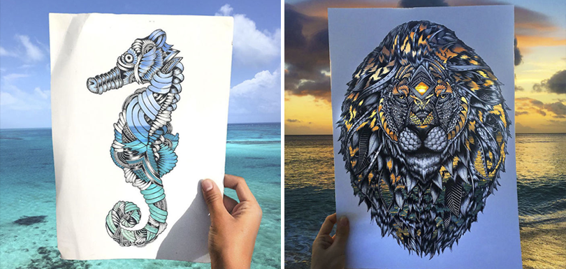 La technique de cette artiste est impressionnante. Au lieu de colorier ses dessins, elle laisse la nature appliquer les couleurs en les exposant devant des paysages.