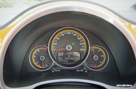 Au final, l’ensemble séduit et s’accorde bien aux formes généreuses de la « Cox » mythique, lui donnant des airs de gros jouet sympathique et gentiment agressif. Attention cependant aux routes que vous comptez prendre avec cette nouvelle Coccinelle, oubliez le sable, l’aventure sera uniquement urbaine, loin des sentiers battus.