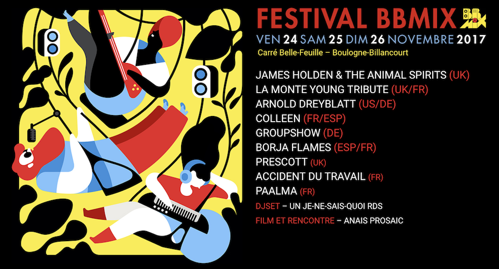 Du 24 au 26 novembre 2017 au Carré Belle-Feuille, vous pourrez vous amuser et vivre de l’afro beat anglais, du drone minimaliste indo-américain, de la cosmic pop déjantée, du kraut-rock berlinois, de l’électro sensible ou encore de la lofi folk tropicaliste re-visitée. Bref, une programmation ultra BBmix. Ultra BBmix ? C’est-à-dire encore plus que toujours ce savant mélange de musiques perchées, de groupes de découvertes, de stars underground et de futures légendes, et tout ça venues du monde entier… JAmes Holden & The Animal Spirit, Colleen La Monte Young Tribute, Goupshow, Borja Flames, Accident du Travail, Prescott, Paalma, Arnold Dreyblatte, avec toi ?