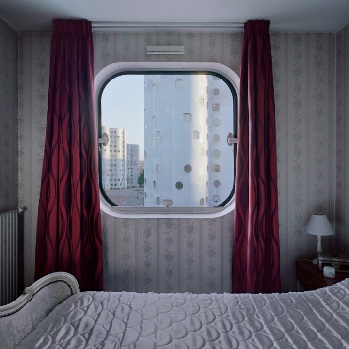 Laurent Kronental est fasciné par les aventures architecturales autant que par son idéal utopiste sous-jacent. Ici, le photographe nous introduit à l’intérieur même du bâtiment, franchissant le seuils des portes et regardant à travers des fenêtres qui s’ouvrent sur des hauteurs vertigineuses, des horizons tentaculaires et des ciels immenses. L’oeil se laisse aller dans le spectacle sensuel de cette ville qui s’embrasse au crépuscule ou de ces tours qui filent jusqu’au ciel. Pourtant, ces vues à couper le souffle ne sont que de simple réflexion sur le quotidien de ces résidents. Elle n’est que l’arrière-plan d’une vie quotidienne. La cuisine, le lit, le canapé se mélangent ainsi aux paraboles, façades, lumières urbaines. L’intérieur entre ainsi en résonance avec l’extérieur dans un dialogue où s’instaurent de multiples nuances. L’oeil du photographe vous invite à ne pas errer dans l’infini envoûtant du paysage. Il vous renvoie à ce regard qui rend humain. Il trouve la limite, le cadre ou plutôt l’encadrement de ces vies toutes en symbole.