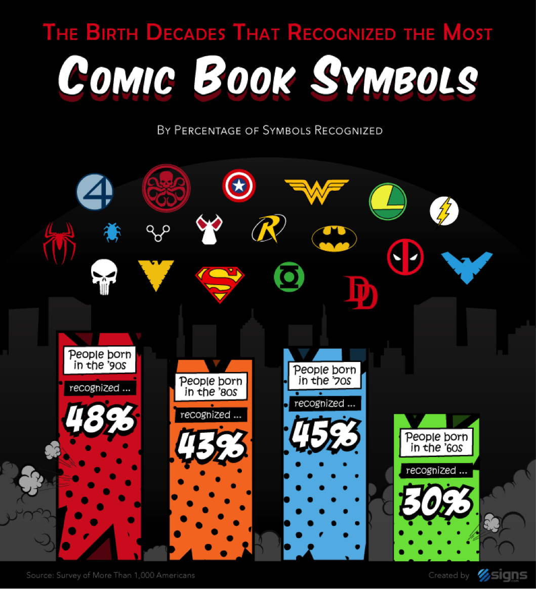 Bien sûr, certains symboles de la culture pop sont plus reconnaissables que d’autres. Certains inspirent plus de ferveur, des costumes d’Halloween aux tatouages de fan. Et certains – comme le logo de Superman ou de Batman – transcendent les générations, conservant leur renommée pendant des décennies.