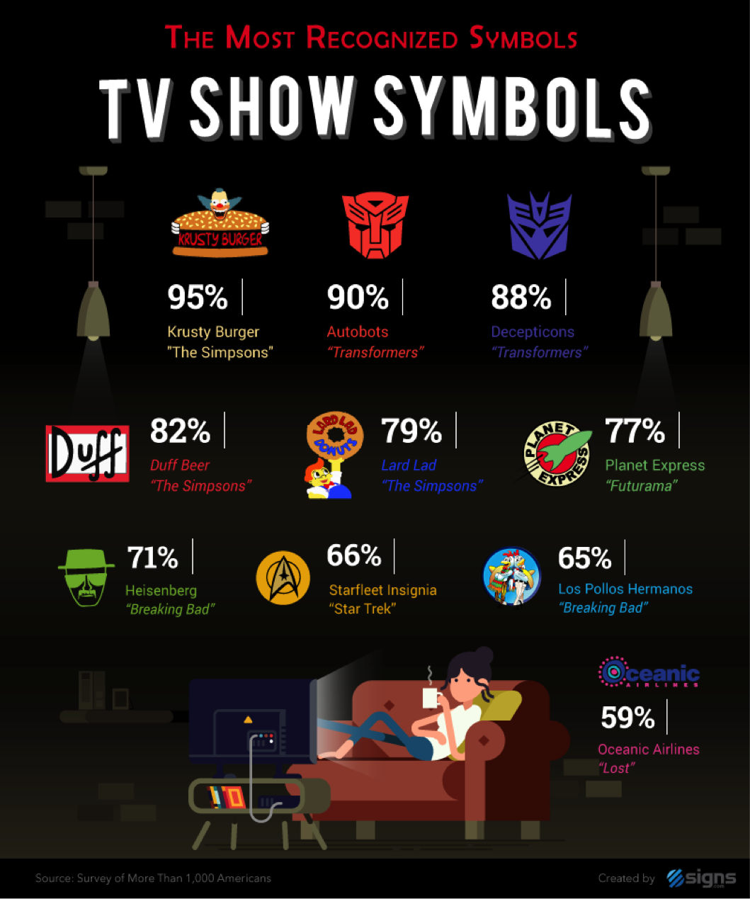 Il vous semble logique que tout le monde connaisse aujourd’hui la célèbre bière dont raffole Homer Simpson ou l’entreprise des monstres Sully et Mike Wazowski. Vraiment ? Seriez-vous capable de reconnaître leur logo ? Tout le monde aurait selon vous la même culture populaire ? Pourtant, vous seriez surpris par les résultats de cette enquête de signs.com.