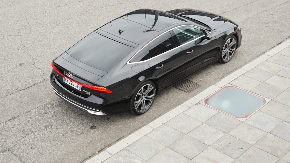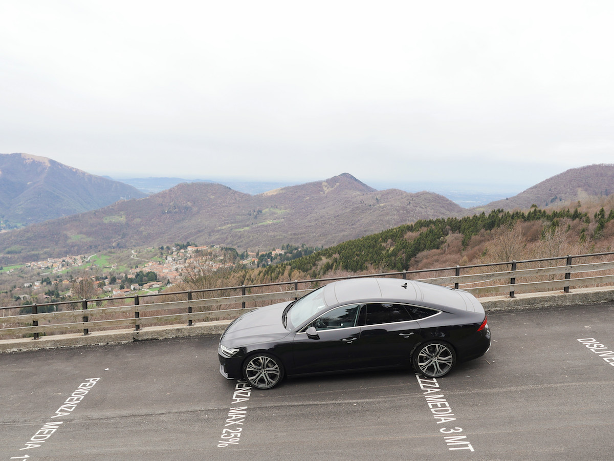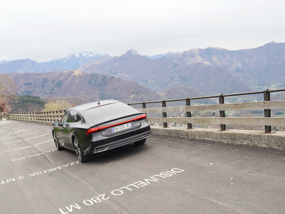 Le départ de ce nouvel essai est pris au Garage Italia à Milan. Capitale du design, quelques jours avant le célèbre Fuorisalone. Et au premier coup d’oeil, on n’aurait pas été étonné de voir cette Audi A7 Sportback en exposition. Seulement, pas le temps de se laisser admirer, l’envie de prendre la route est trop forte. Direction le Bosco Verticale, vérifier les capacités urbaines de cette nouvelle A7 Sportback, entre monuments anciens vénérables et nouvelle architecture avant-gardiste. Un paysage qui sied parfaitement à cette nouvelle berline de luxe sportive d’Audi. Entre classicisme et modernisme. Sous sa robe élégante qui a fait la marque de fabrique du charme allemand, la nouvelle Audi A7 Sportback révolutionne le genre. Les lignes se veulent bien plus tendues, sans agressivité pourtant. Le dynamisme de l’ensemble offre une impression de force sans pareil. Bien qu’à l’allure sportive, cette Audi A7 Sportback propose en réalité un confort de conduite des plus luxueux. Simplement que cette nouvelle dolce vita se conjuge désormais au futur simple. Simple en apparence car la nouvelle Audi A7 Sportback embarque un bagage technologique sans pareil, qui la propulse à vive allure dans le meilleur du haut de gamme des catégories premium. D’aujourd’hui comme des années à venir.