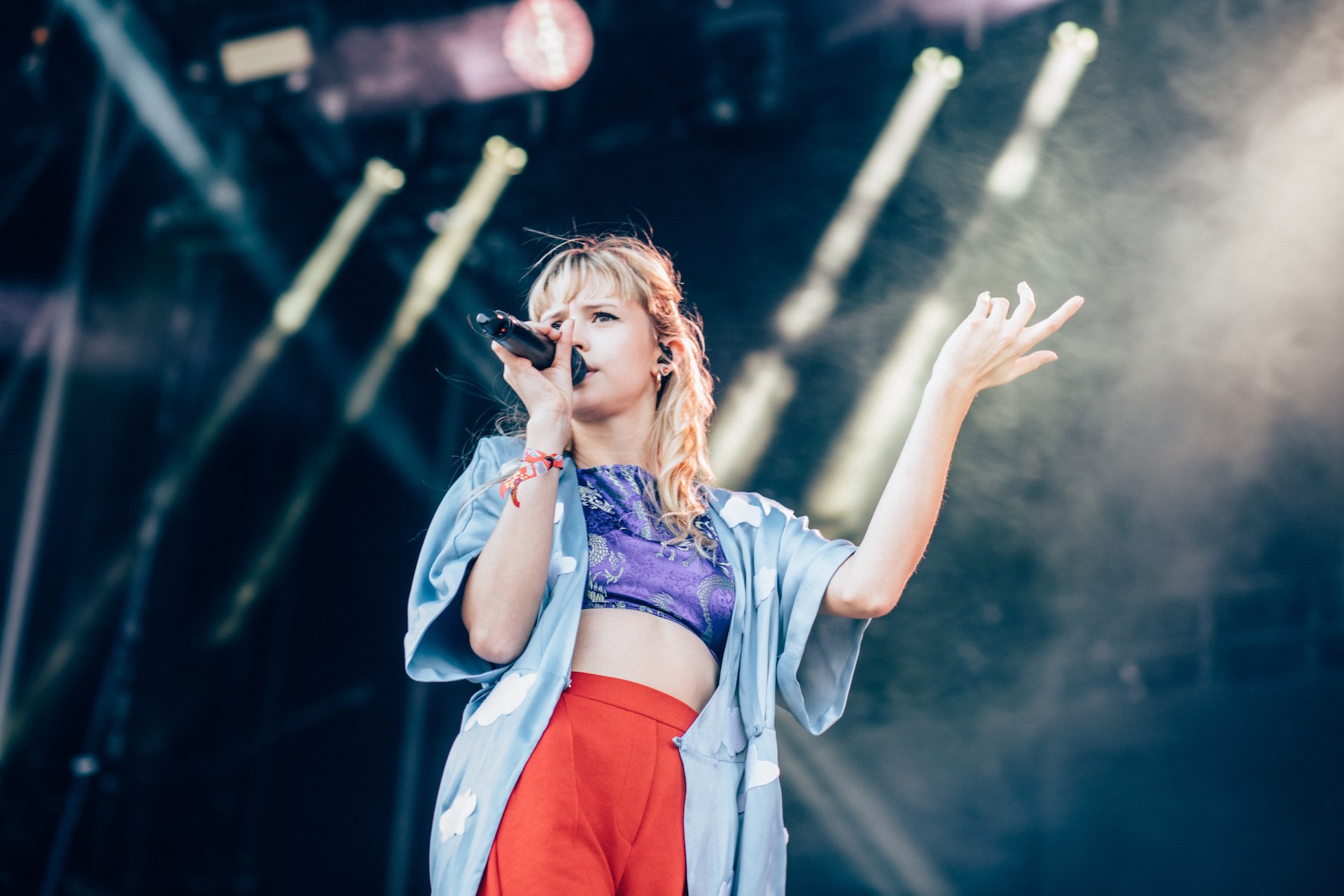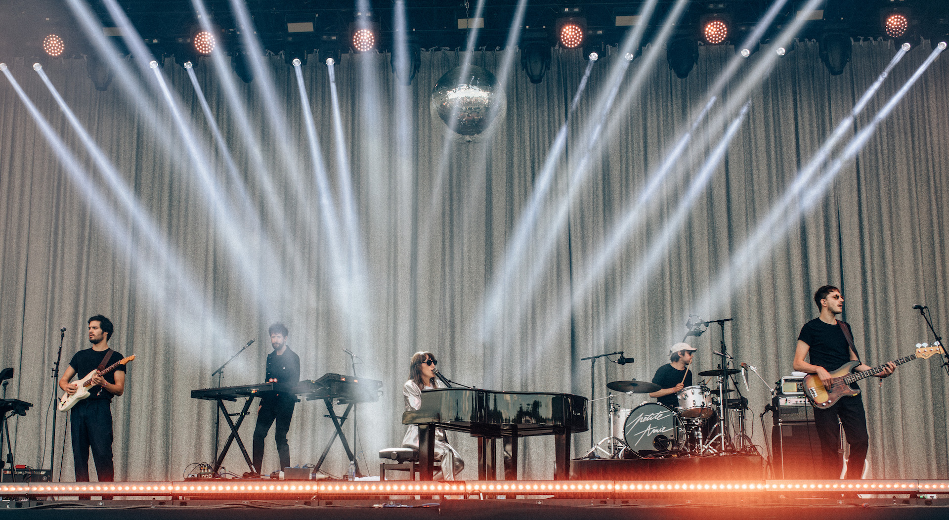 Certainement le plus beau moment du festival, pas loin d’être la plus belle également. Rayonnante sous sa boule disco et dans son costume de lumière. Bien que Juliette Armanet ait convaincu beaucoup de monde depuis la sortie de son premier album Petite Amie en avril de l’année dernière – moi le premier – , je n’avais jamais eu l’occasion de la découvrir sur scène dans ses nouveaux apparats de lumière. Elle, son groupe, le public, tout le monde était aux anges, pas loin d’un soleil à son image, de plus en plus étincelant. Donnant l’envie folle de chanter des chansons d’amour en plein après-midi. Les mots se pèsent, les mélodies s’envolent et les cœurs fondent. Juliette Armanet pourrait bien être celle, simple, rare, qui s’imposerait comme la Petite Amie la plus aimée de la chanson française. Toujours accompagnée de sa « bête noire », son piano, éternel partenaire de crime et de danse, la délicate confie depuis près de deux ans déjà ses douces folies sentimentales. Et aucune lassitude, bien au contraire. Entre nostalgie et humour, Juliette Armanet a su créer, autour de ses mélodies charnelles et sensibles une aura originale, entre le rose et le noir. Et le public, forcément, l’aime à la folie. Et à raison.