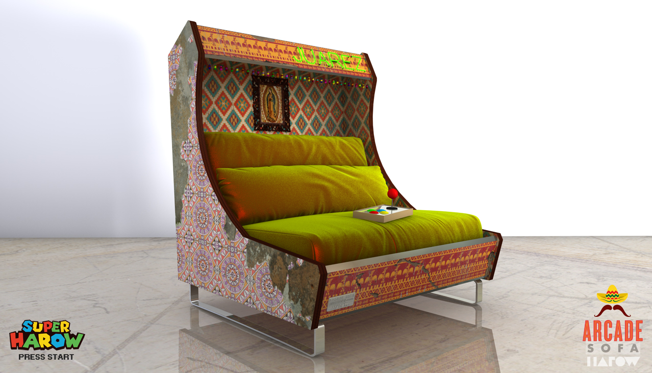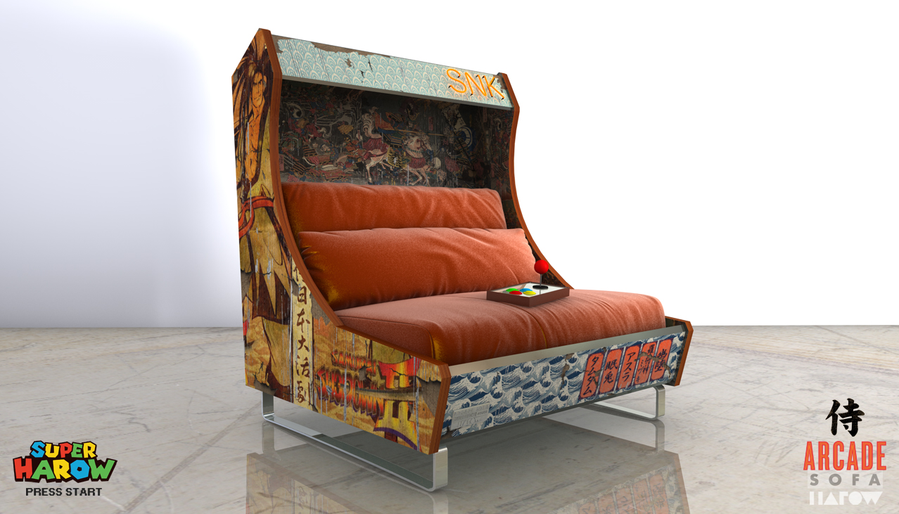 Construit en l’honneur de cette belle époque et de la nostalgie d’aujourd’hui, le canapé Arcade de Harow est fabriqué à partir de bois recyclé, d’acier et de velours ; le tout à la main. Prêt à offrir le soulagement nécessaire à votre vieux dos pendant la session de jeu la plus longue. Ses dimansiosn sont assez classiques : 125 cm x 110 cm x 150 cm. Suffisamment large pour que vous puissiez vous étendre pendant que vous jouez.