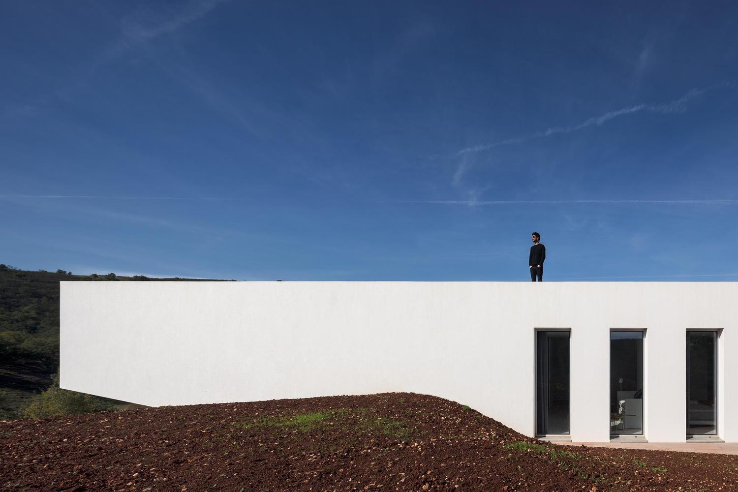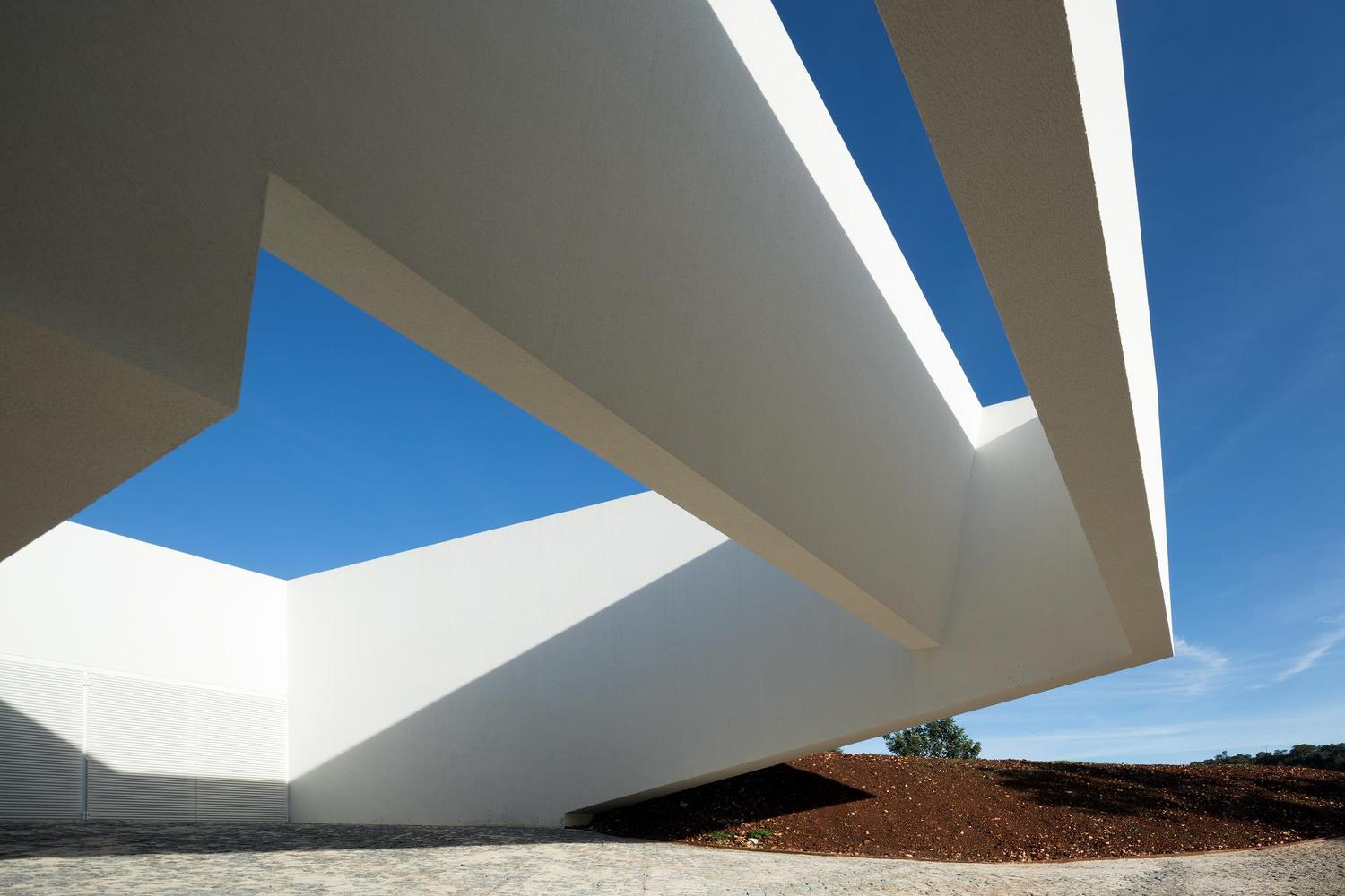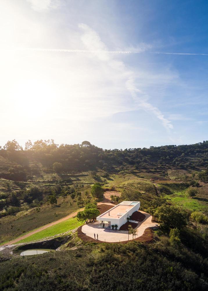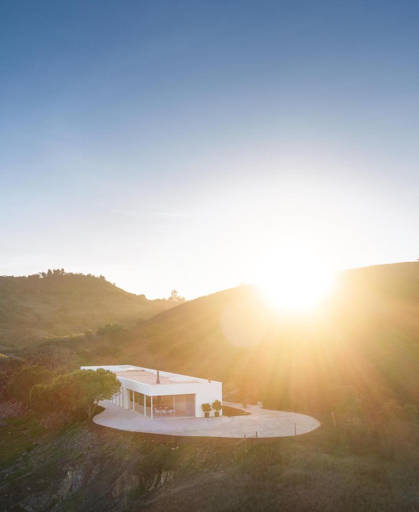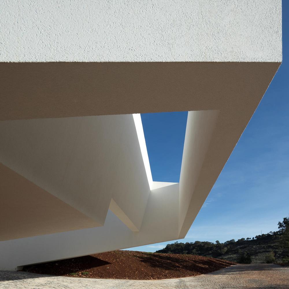 Difficile de ne pas se laisser séduire par les angles vifs et la façade blanc mat de cette Casa em Silves du studio de Vitor Vilhena. Toute cette structure sculpturale extérieure contraste avec charme l’environnement verdoyant de la campagne portugaise.