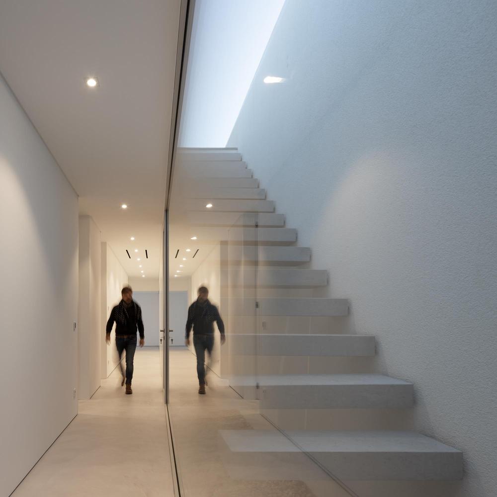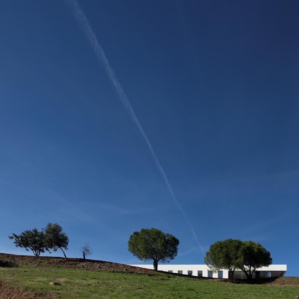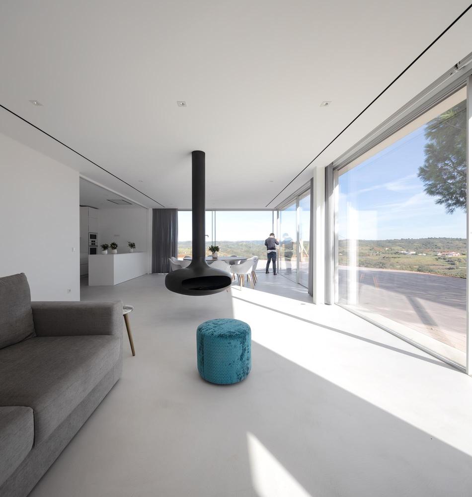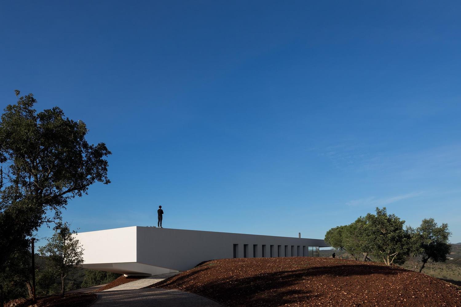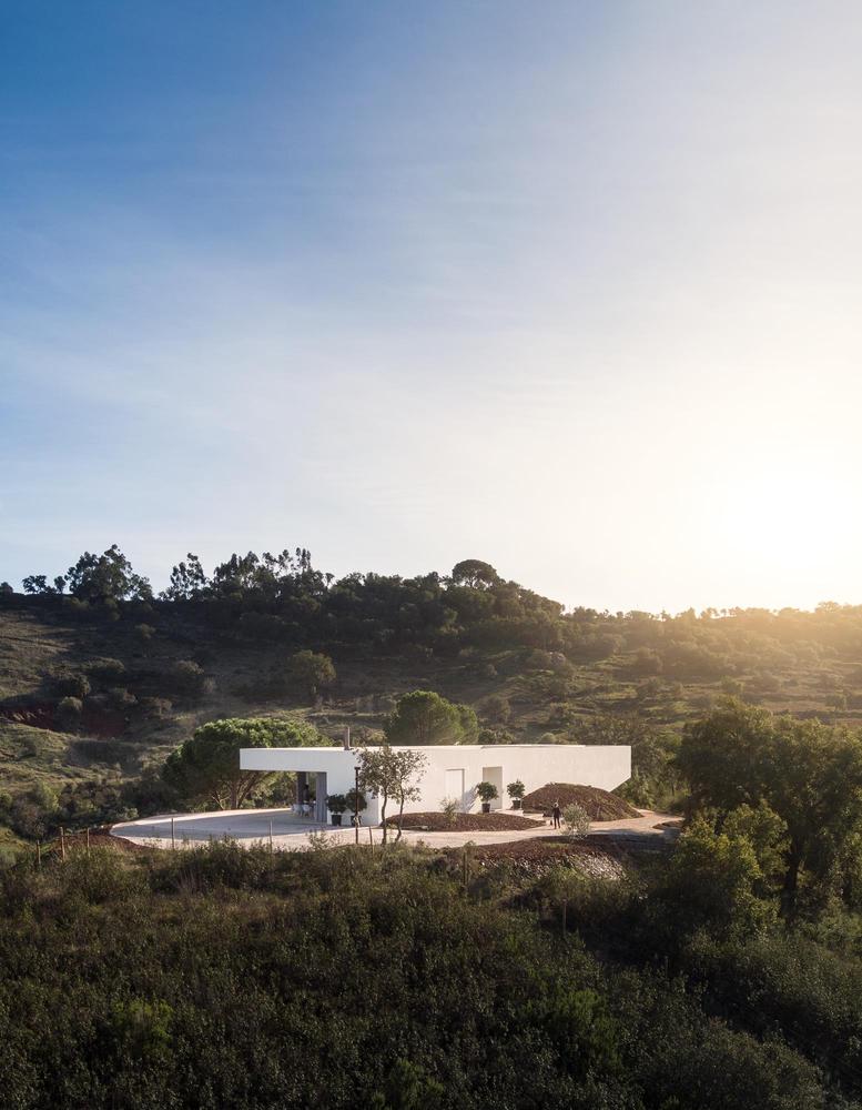 Difficile de ne pas se laisser séduire par les angles vifs et la façade blanc mat de cette Casa em Silves du studio de Vitor Vilhena. Toute cette structure sculpturale extérieure contraste avec charme l’environnement verdoyant de la campagne portugaise.