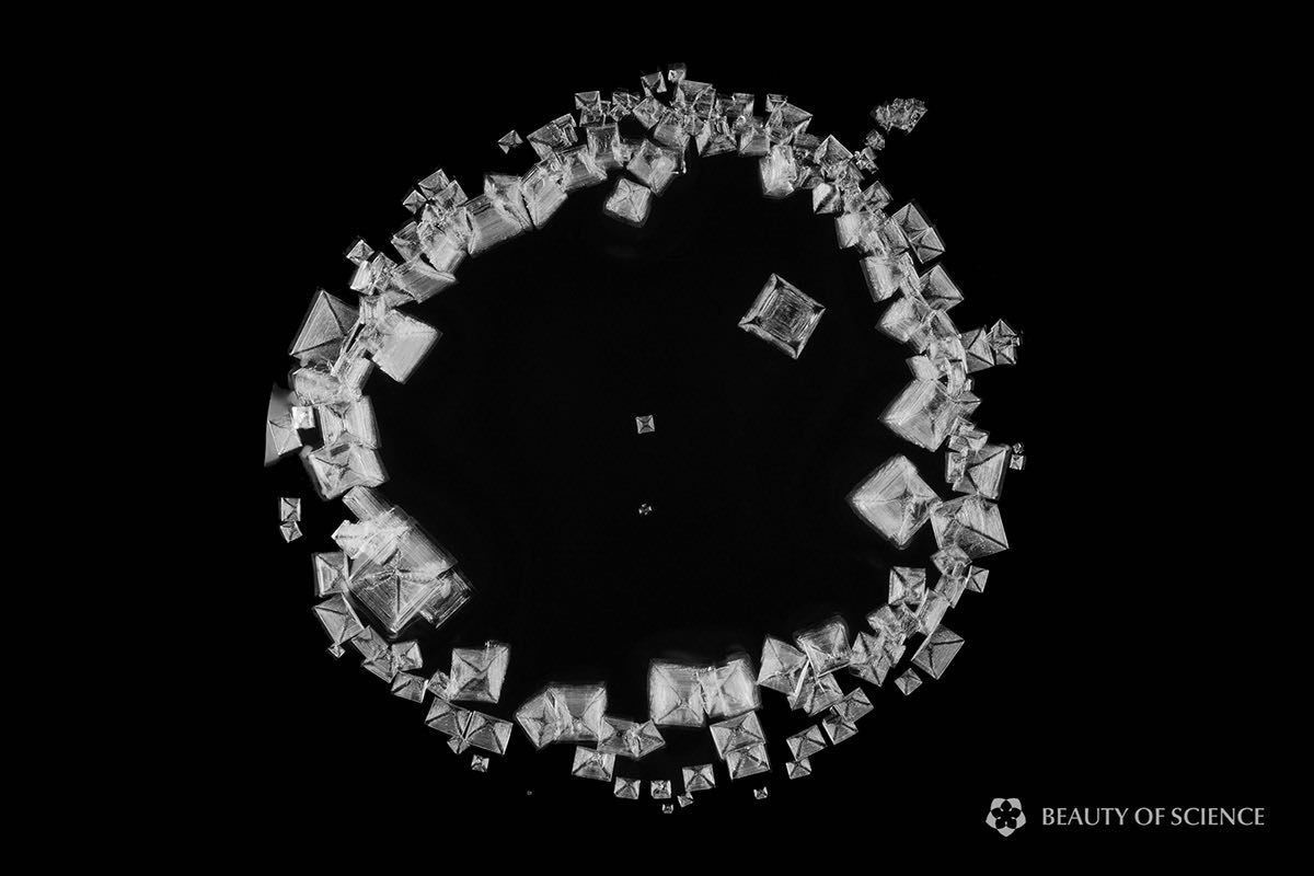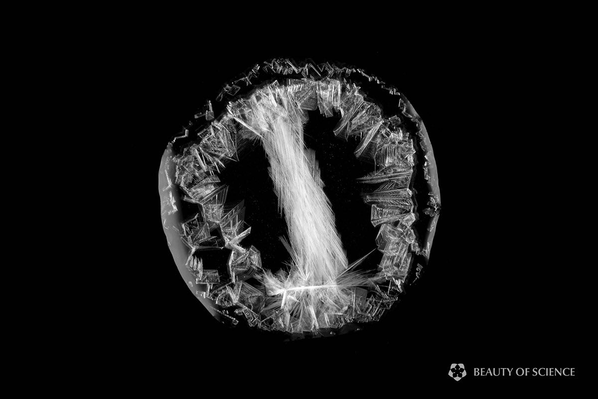Dans The Arctic, le sel se cristallise, forme des cristaux notamment de nitrate de potassium et de sulfate de sodium, et explosent comme des feux d’artifice. On aurait l’impression que ce sel gèle comme de la glace à travers une vidéo en accélérée. D’où le titre de ce film. Le film a été créé pour Beauty of Science, une série en cours qui présente des vidéos esthétiquement intrigantes sur la science, axées sur les réactions chimiques.