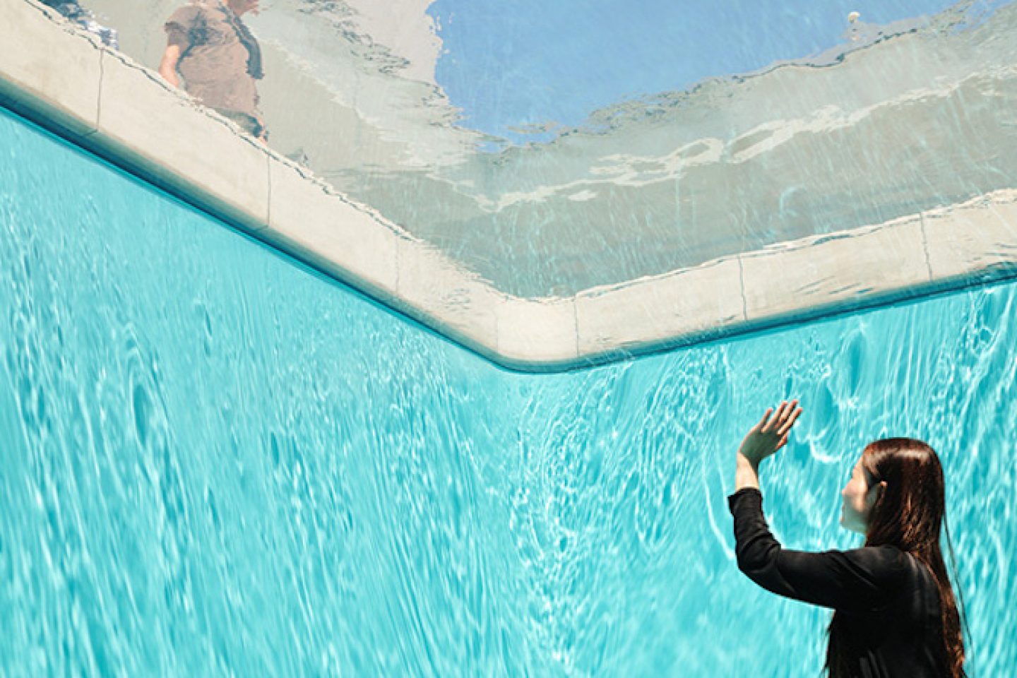 The Swimming Pool est une piscine grandeur nature divisée en deux espaces : supérieur et extérieur, ce qui donne l’illusion très convaincante de voir les gens sous l’eau. L’astuce de cette illusion est que la séparation de ces deux montes est en réalité une mince couche d’eau posée sur une vitre transparente.