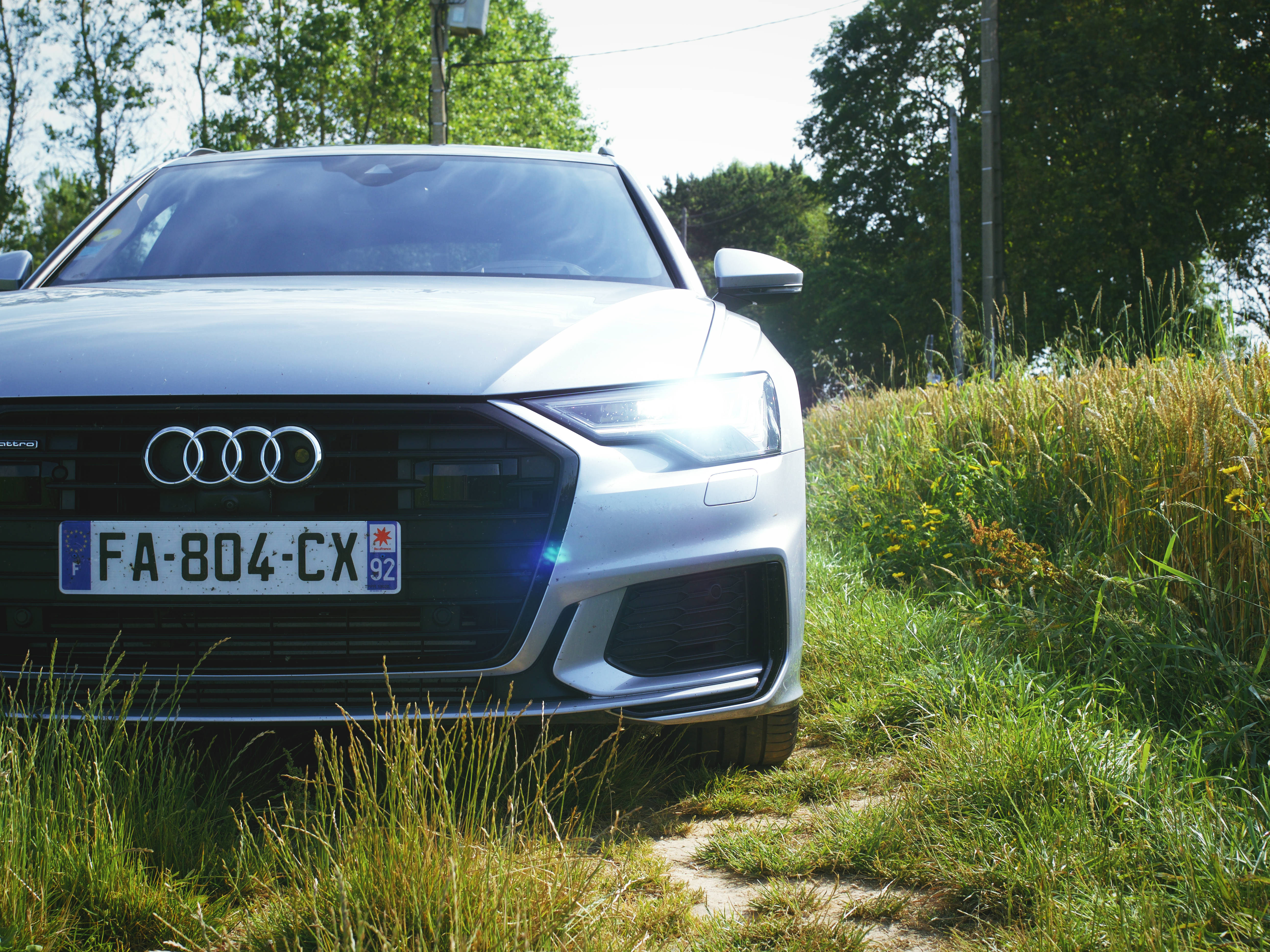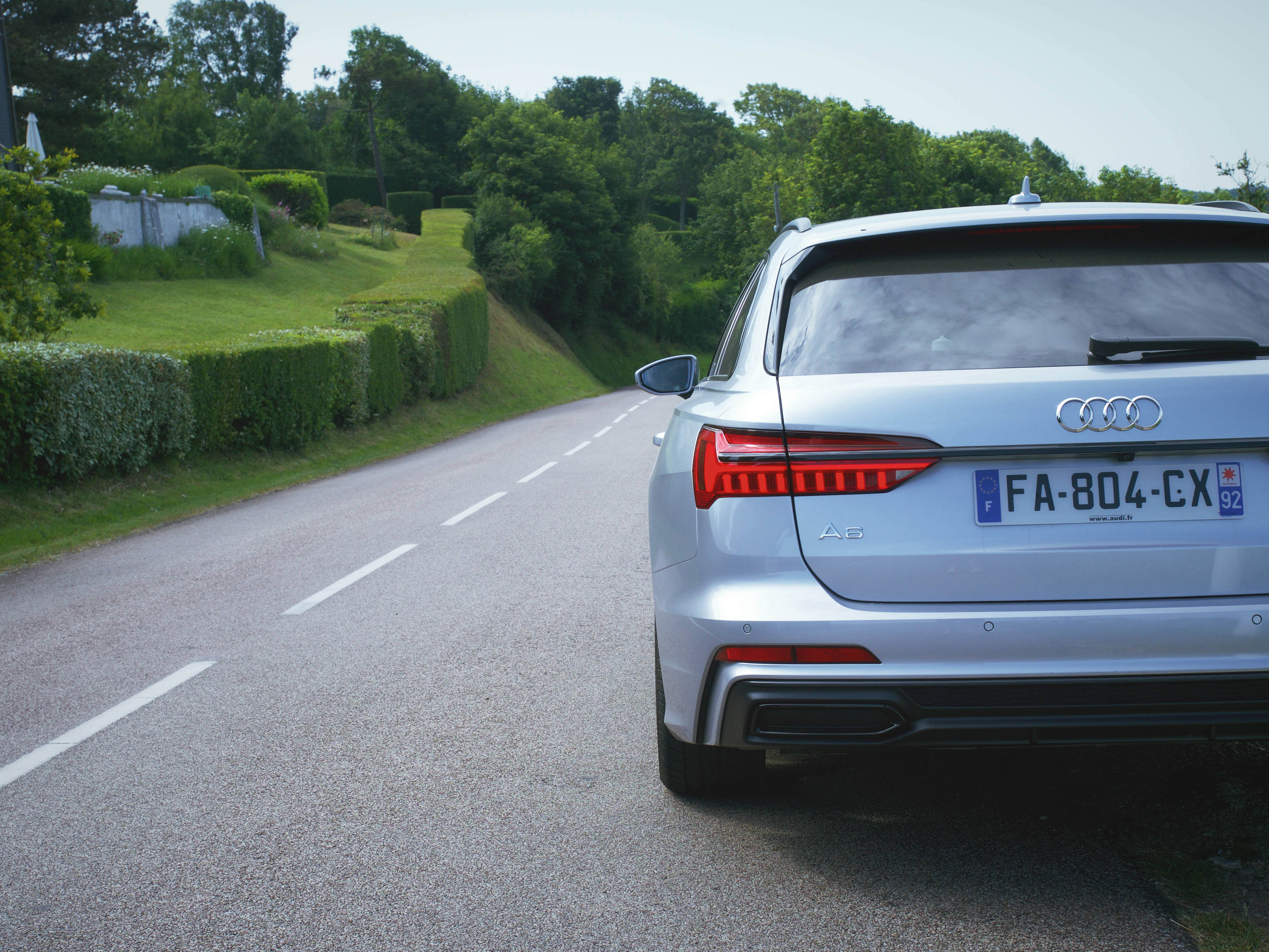 Certes, l’Audi A6 Avant s’inspire savoureusement et forcément de ses ainées, ressemblant beaucoup à sa devancière. Cependant, il s’agit bien d’une nouvelle génération d’Avant, pas d’un simple restylage. Cette nouvelle version du break façon Audi porte plus haut encore l’élégance routière. Ce montant arrière de plus en plus incliné en est la clef de voûte. L’essence même de sa beauté et de son élégance. Et sans perdre en volume par rapport à la génération précédente. Une grande réussite stylistique, surtout avec son pack noir, comme celle que j’ai pu avoir en mains.