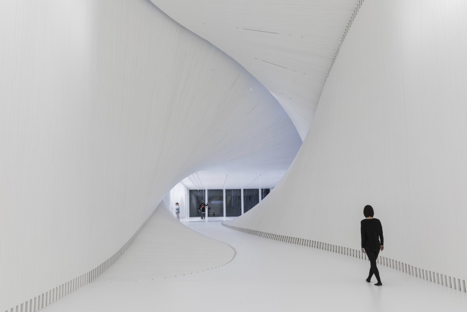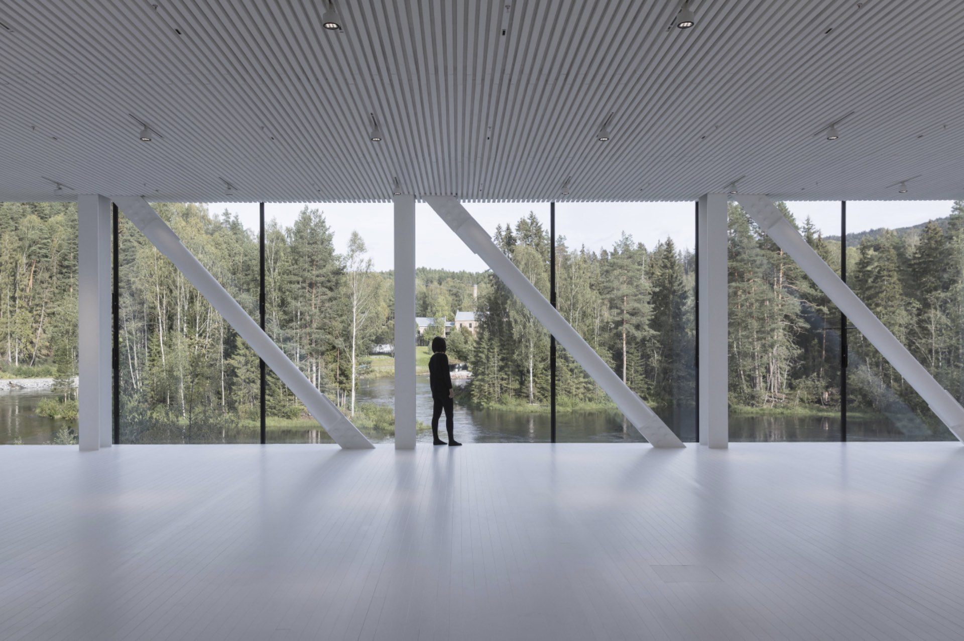 Bien qu’il serve de passerelle sur l’eau, l’intérieur de ce pont fait également office de musée. Des vitrages de grande hauteur encadrent l’intérieur pour offrir une vue imprenable sur la rive du fleuve et l’usine de pâte à papier à côté. Lorsque les fenêtres atteignent la spirale, elles deviennent des puits de lumière lavant l’espace intérieur de la galerie à la lumière naturelle.