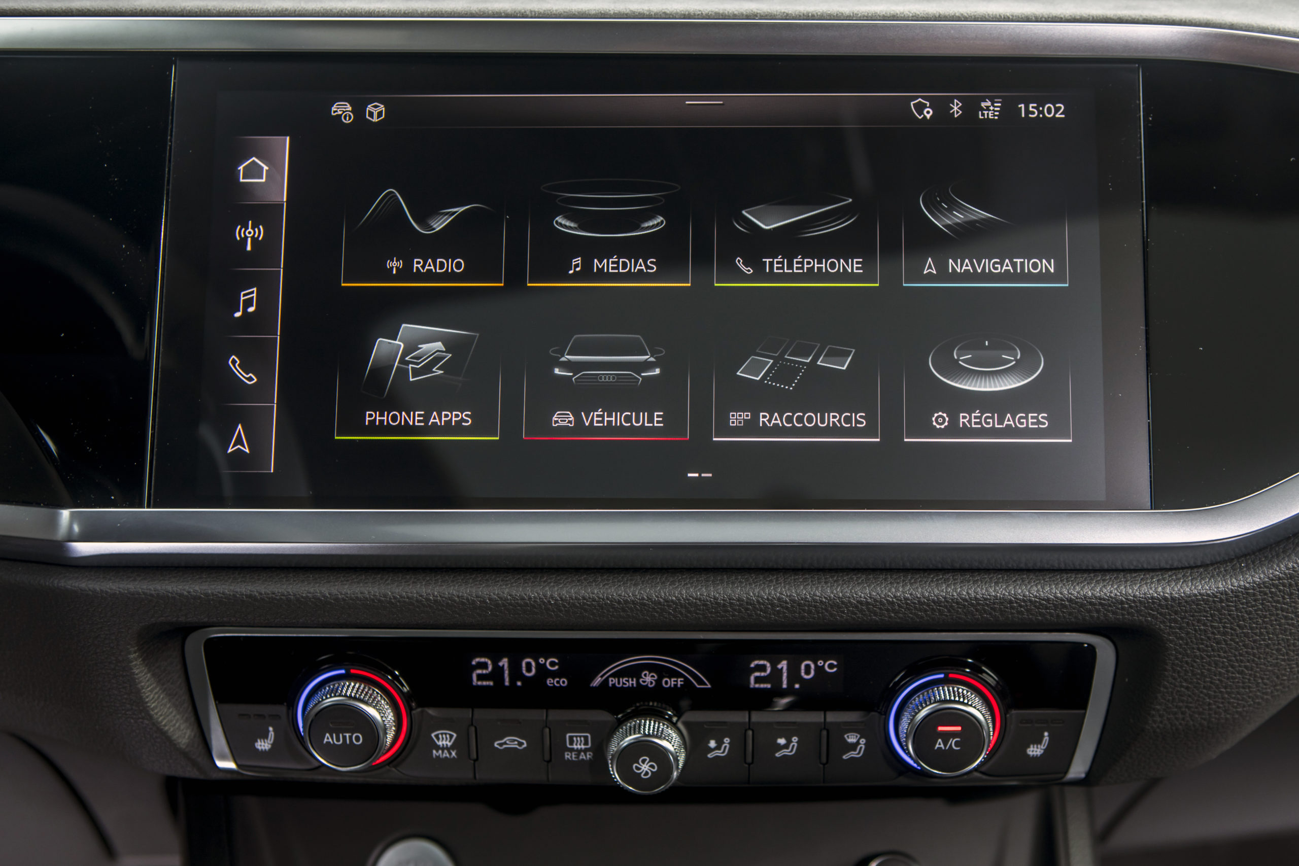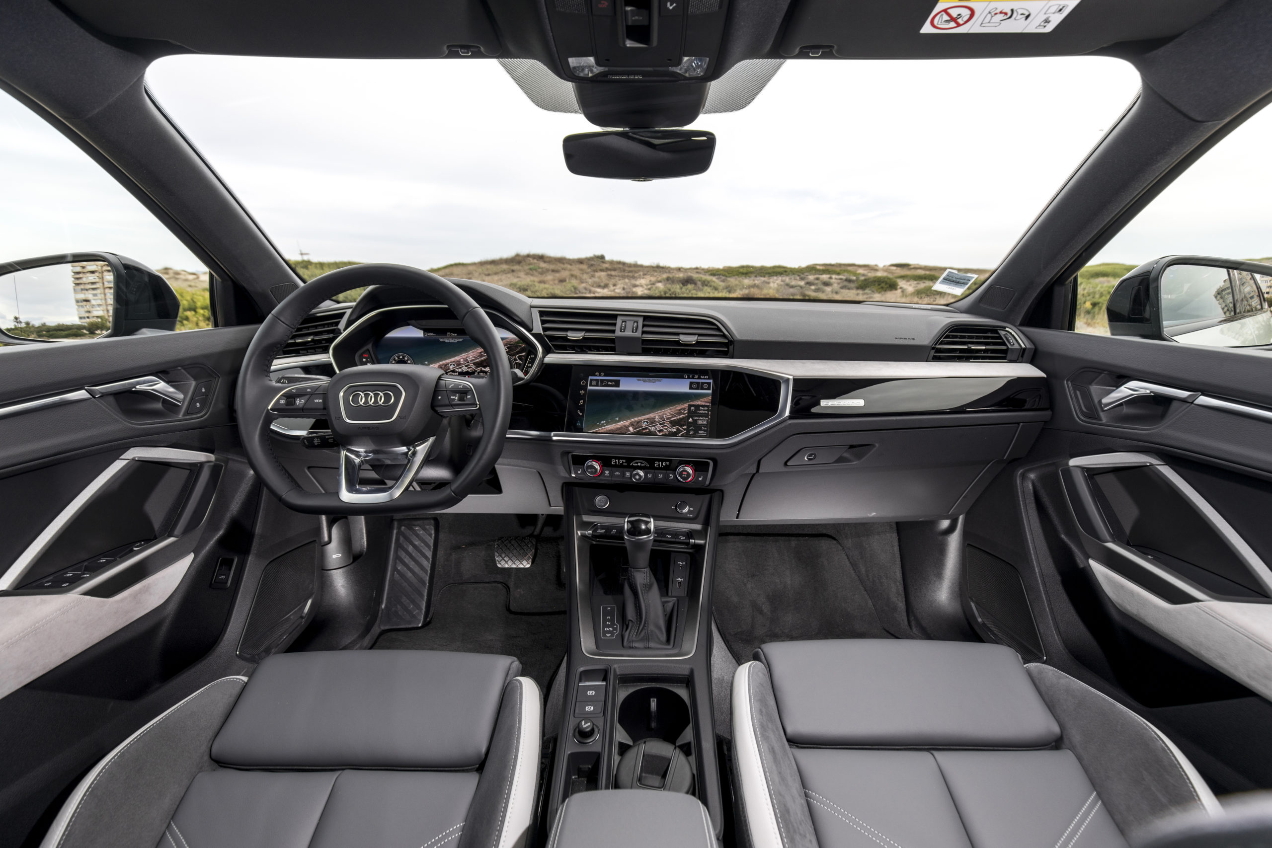 Outre une allure singulière, l’Audi Q3 Sportback vous fait profiter également de technologies dernier-cri qui augmentent le plaisir de conduite à son bord. Comme à son habitude, le tableau de bord digital, le fameux Audi virtual cockpit (disponible en option), retransmet toutes les informations nécessaires à votre confort et sécurité, telles que la carte de navigation ou les compteurs, via un écran HD de 12,3 pouces au design toujours impeccable et au graphisme toujours aussi soigné. Le système d’infodivertissement MMI Navigation Plus au centre coiffe le haut de la gamme avec un écran entièrement tactile de 10,1 pouces disposé sur la console centrale. Et pour toujours rester connecté sur la route, vous pouvez évidemment relier votre smartphone à votre Audi grâce à l’Audi smartphone interface et l’Audi phone box. Digital native dans l’âme, l’Audi Q3 Sportback se dote, en option, des services Audi connect qui vous permettent, par exemple, de connaître en temps réel le trafic sur votre route, les prix des stations-services à proximité… Et pour aller plus loin encore, avec l’application myAudi, vous contrôlez à distance certaines fonctions, comme le verrouillage/déverrouillage des portes, ou consultez en temps réel le statut de votre Audi Q3 Sportback. La grande classe des grand-frères des gammes supérieures débarquent sur les SUV plus compacts. Et c’est pas plus mal au final.
