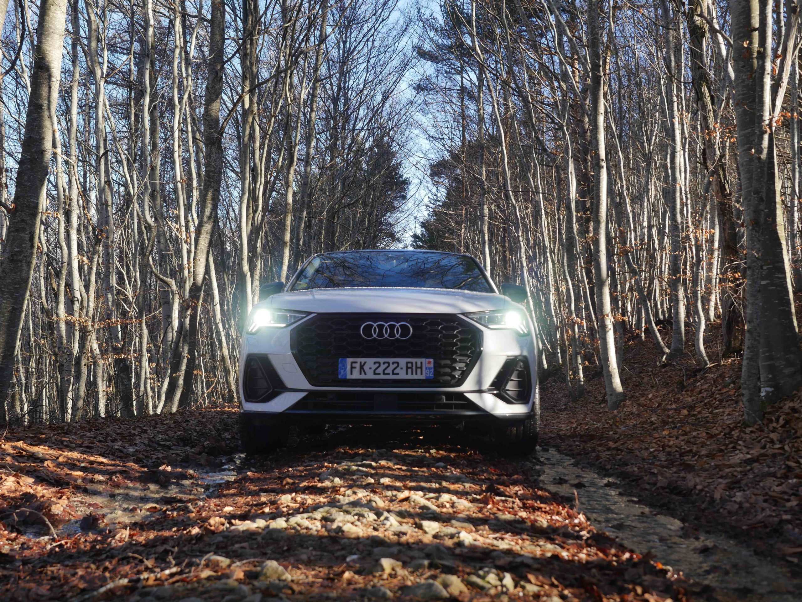 Comme pour le Q3, la version Sportback embarque également les dernières innovations Audi en systèmes d’aide à la conduite. Ce qui reste toujours bluffant pour la catégorie. Le régulateur de vitesse adaptatif est disponible en option avec la boite automatique S tronic. Celui-ci cumule plusieurs fonctions avec le régulateur de vitesse adaptatif, le traffic jam assist pour conduire dans les embouteillages et l’active lane assist qui maintient automatiquement la voiture dans sa file. Ainsi, le conducteur bénéficie d’assistances à la fois longitudinales et latérales, ce qui améliore considérablement le confort, en particulier sur les longs trajets. L’essayer, c’est l’adopter. Il en va de même pour l’avertisseur de changement de file. Si l’un des deux radars arrière détecte un véhicule qui se trouve dans l’angle mort ou qui s’approche rapidement par l’arrière, une LED s’allume dans le rétroviseur extérieur correspondant pour alerter le conducteur. Bien évidemment, l’Audi Q3 embarque le Parc Assist et le système Audi pre sense front safety.